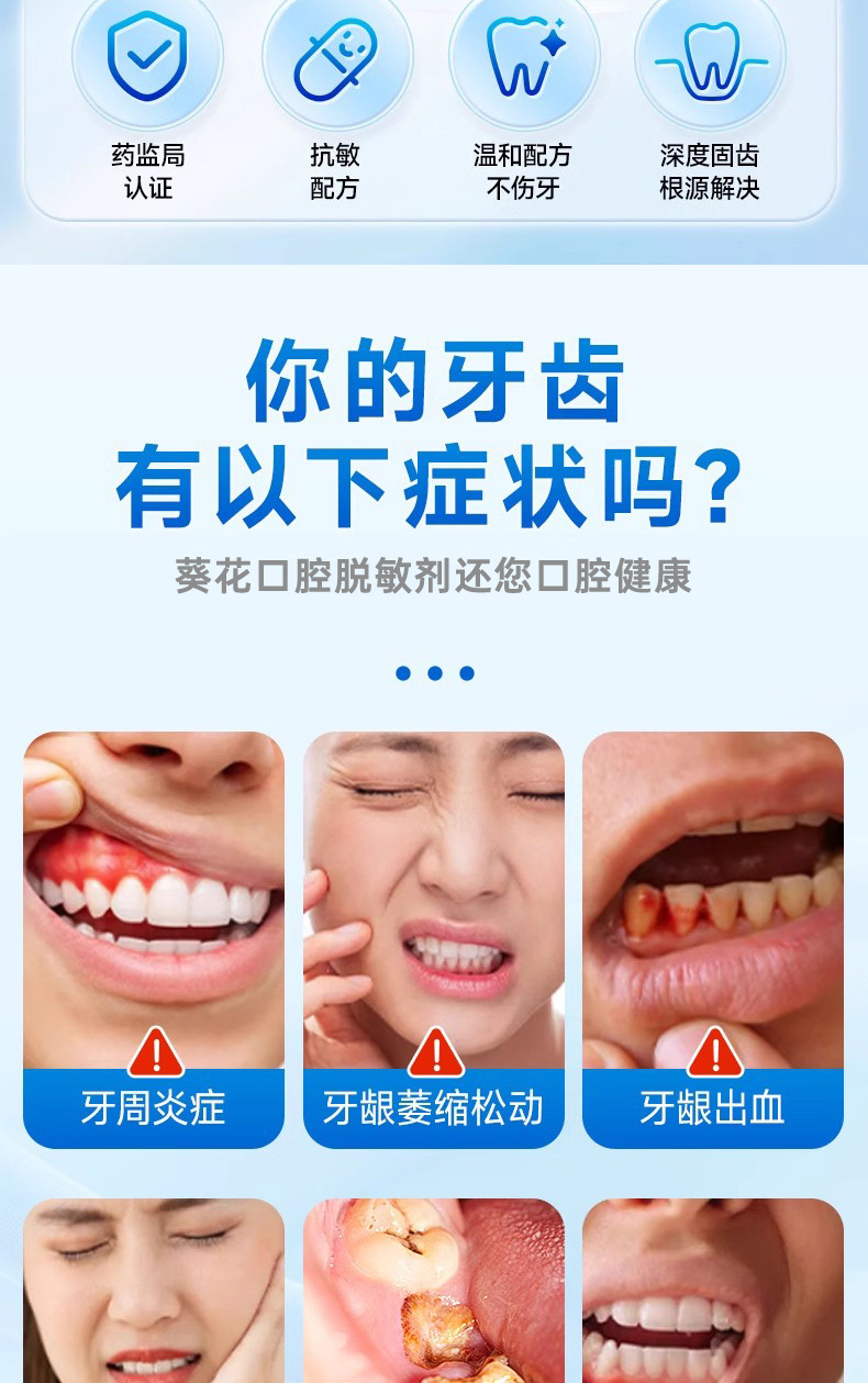 葵花牙齿脱敏剂二类牙科分离剂抗过敏牙周炎护龈医用口腔护理牙膏