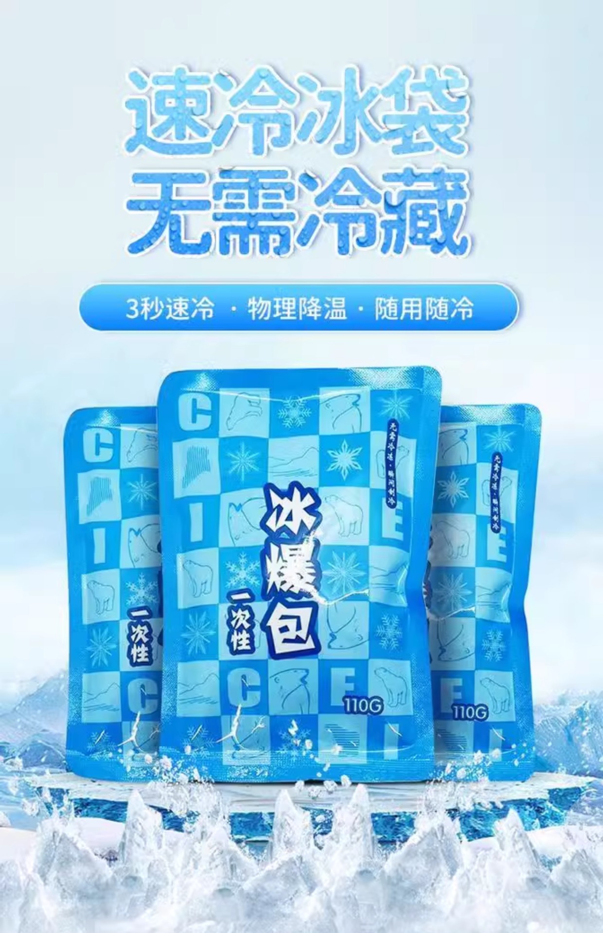 冰袋一次性一捏速冷无需冷冻冰敷脸眼部冷敷膝盖便携户外降温冰包