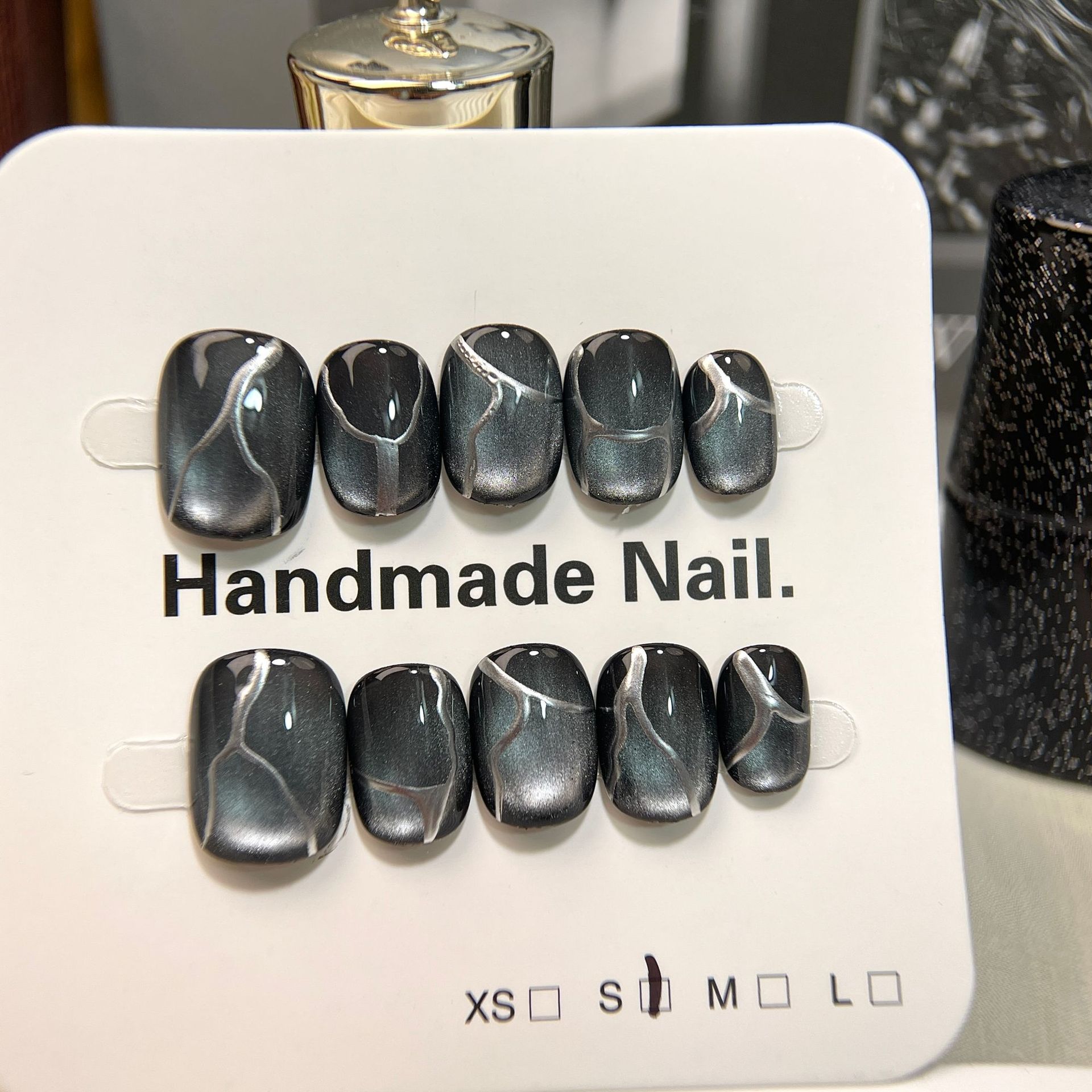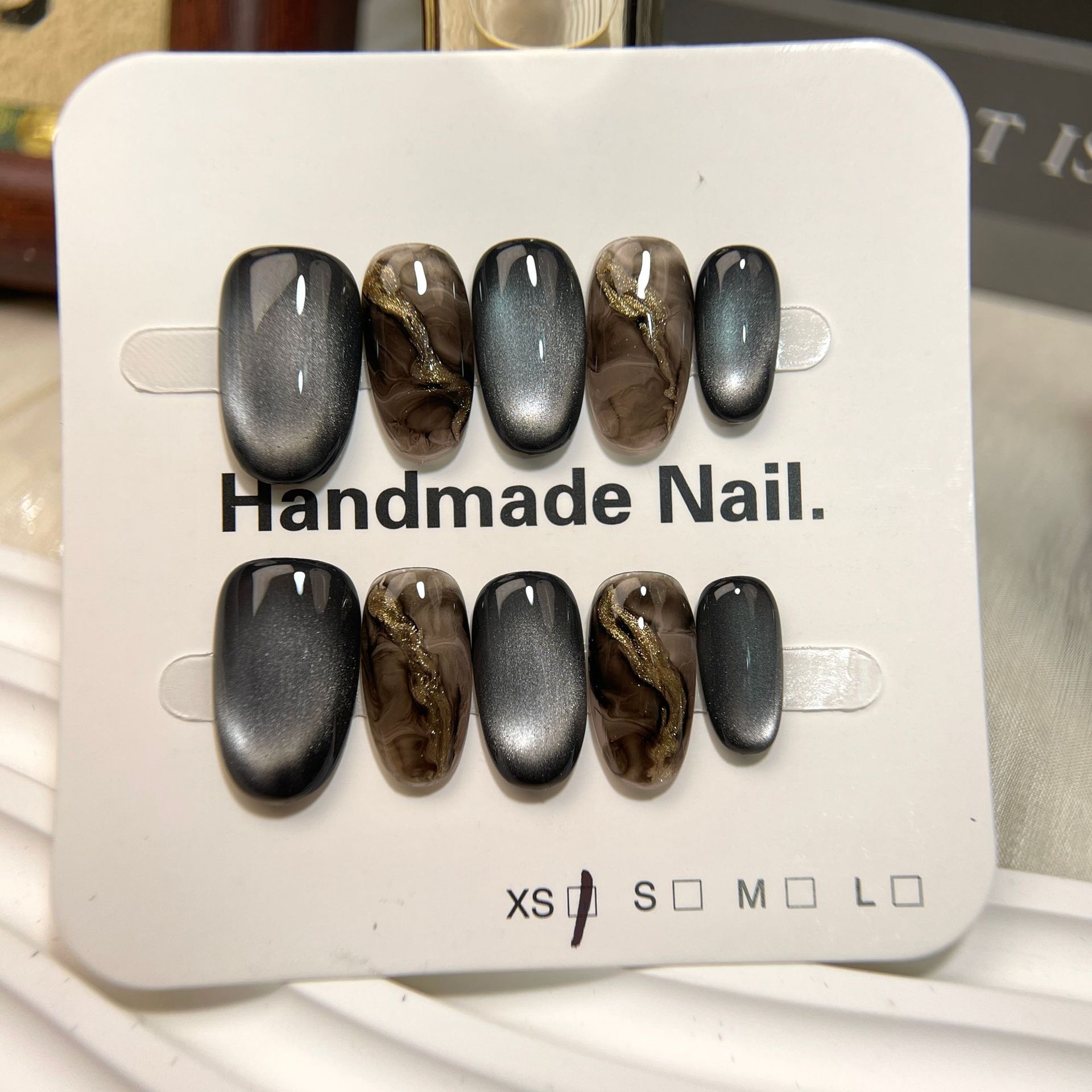 纯手工穿戴甲高级感美甲贴猫眼手绘小猫指甲贴甲片显白黑色辣妹