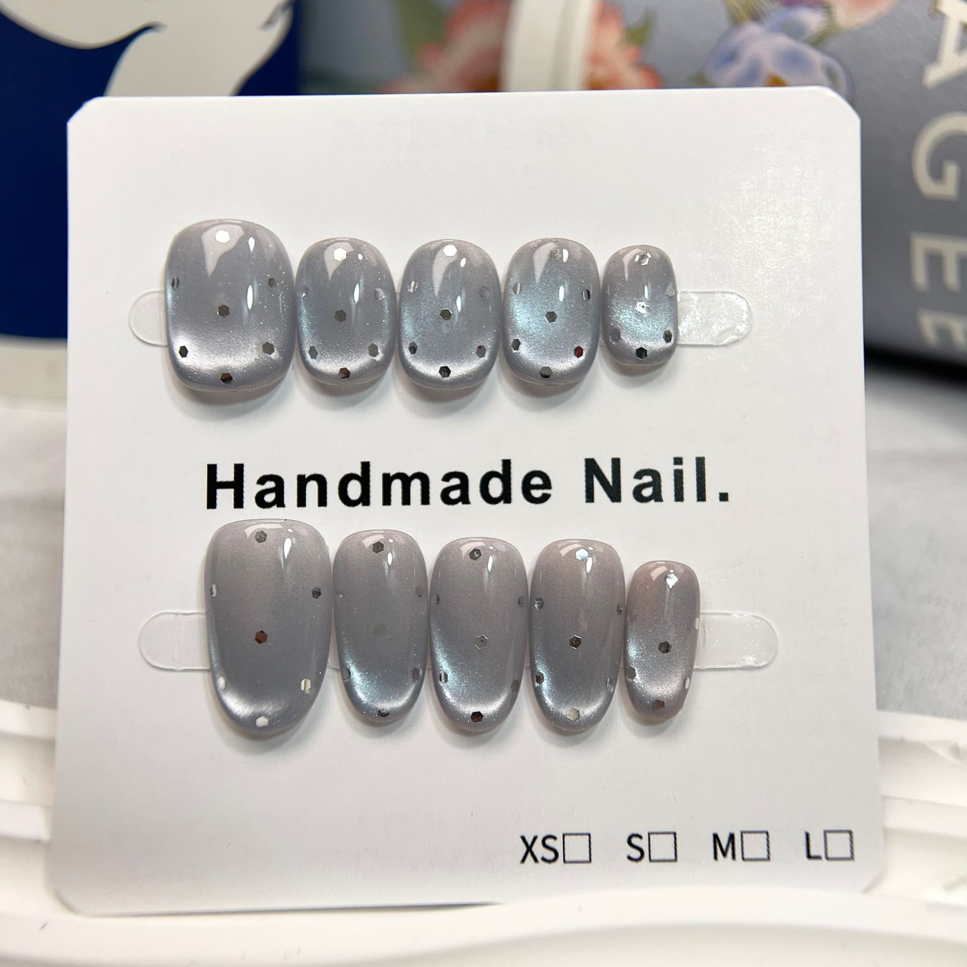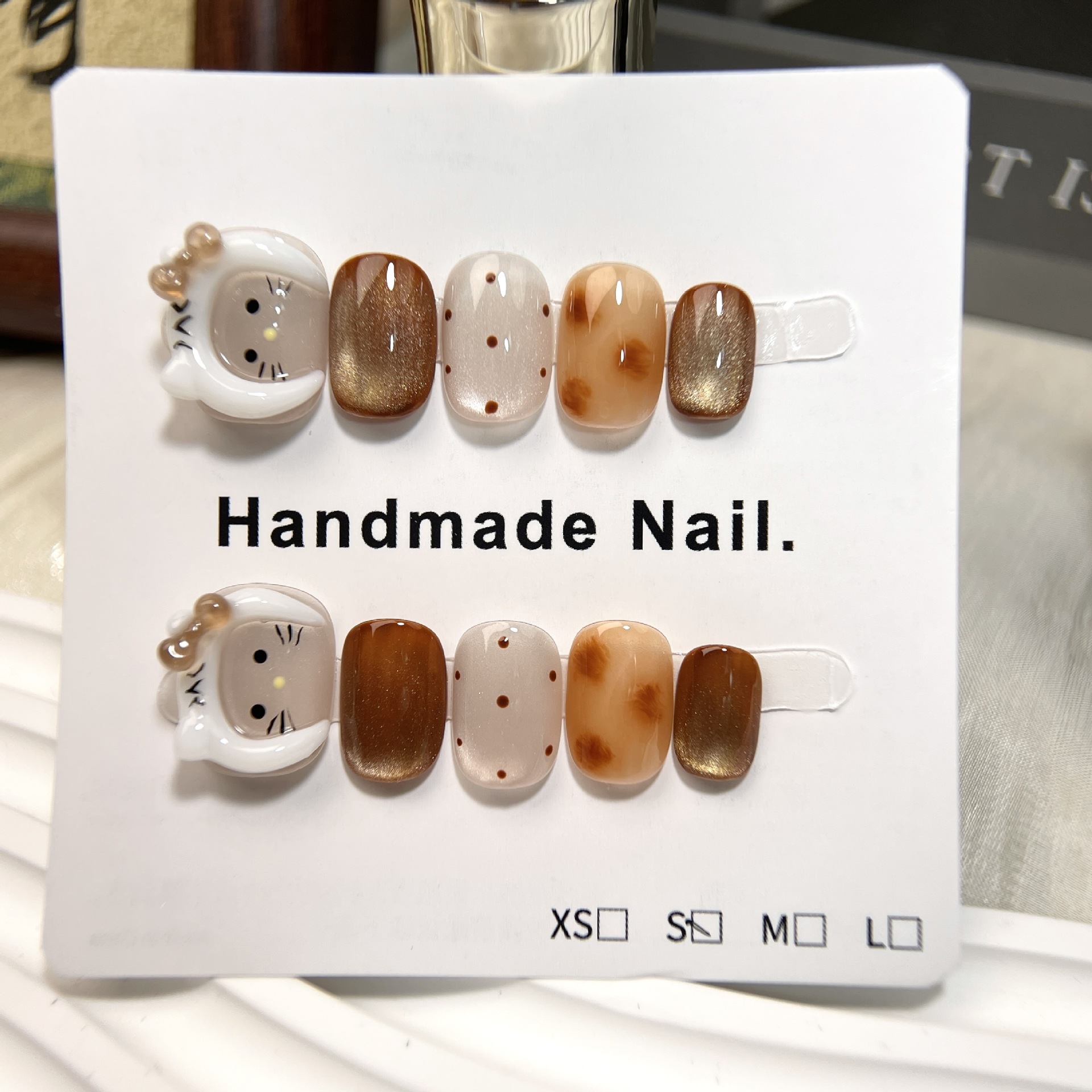 纯手工穿戴美甲定制可爱猫猫眼甜酷豆豆甲短款显白甲片指甲贴
