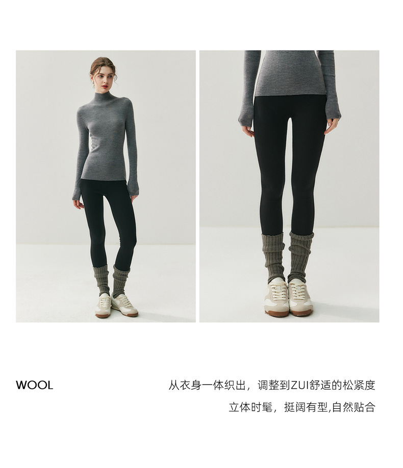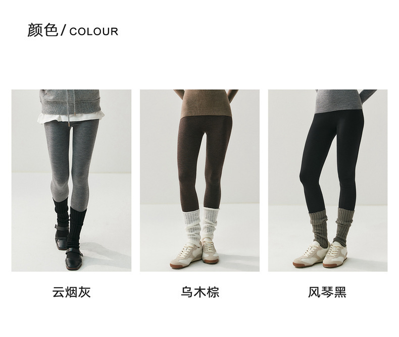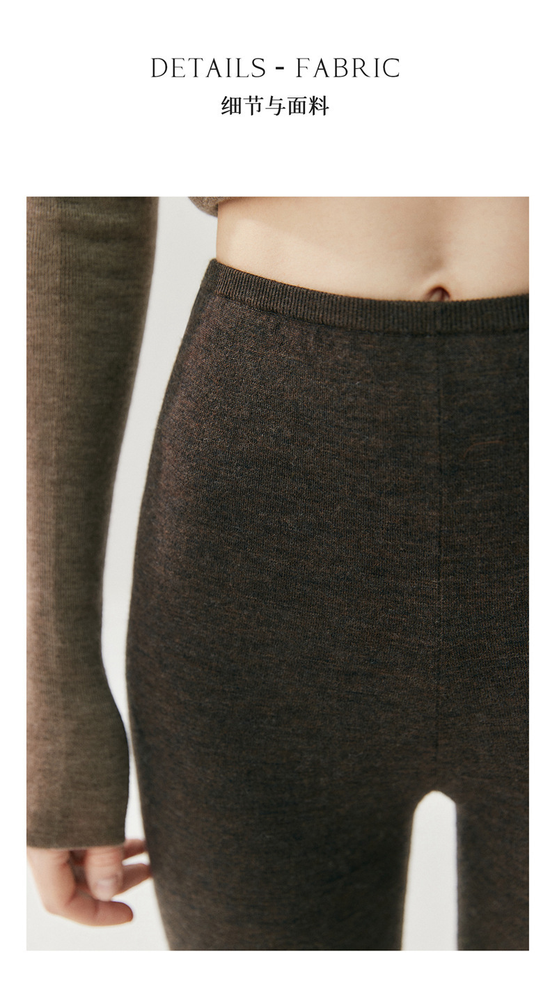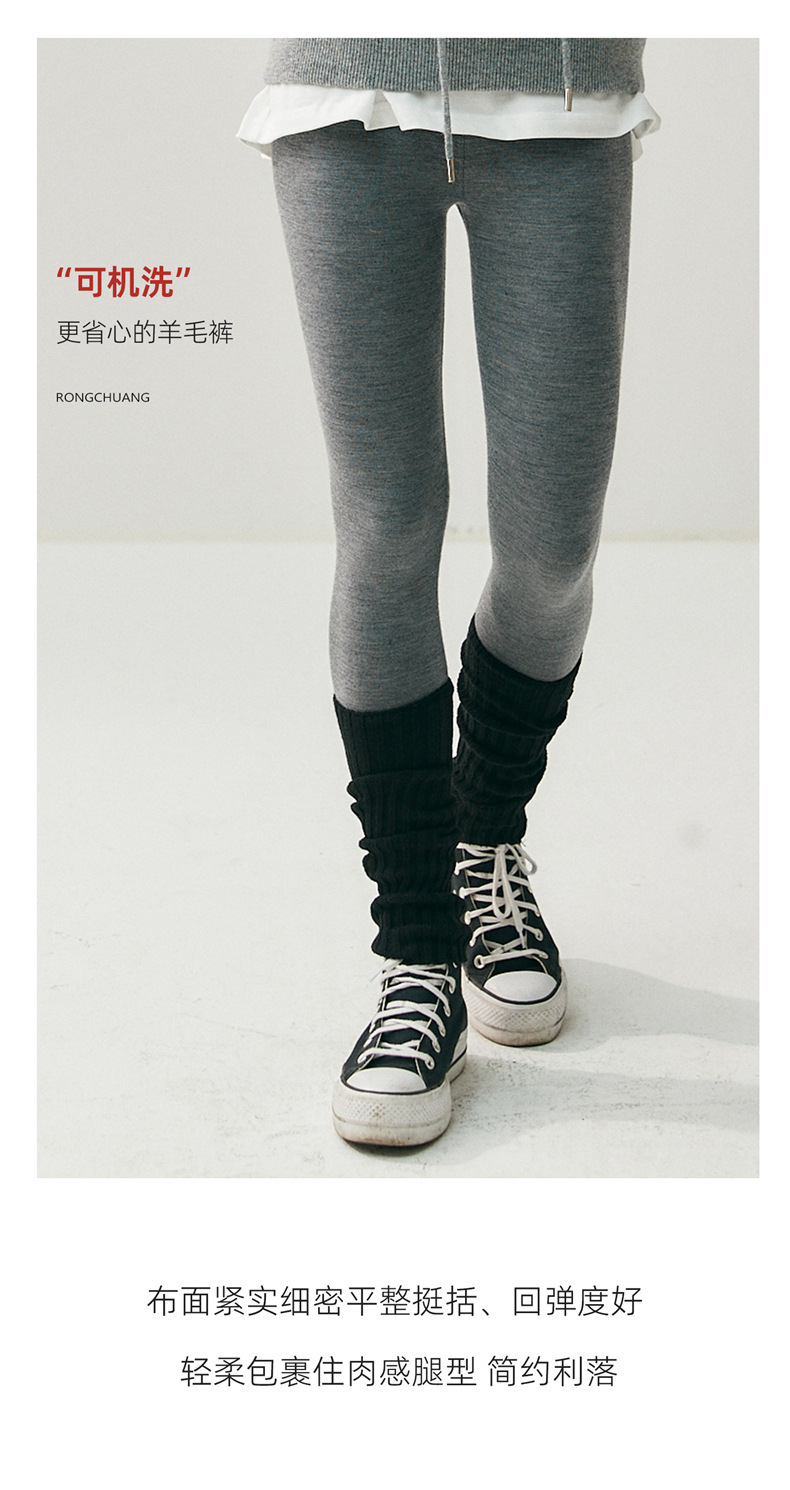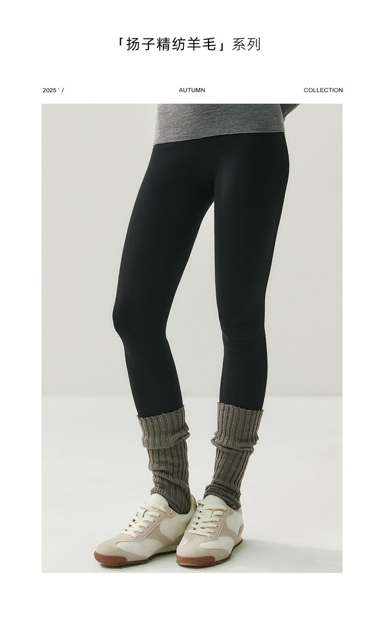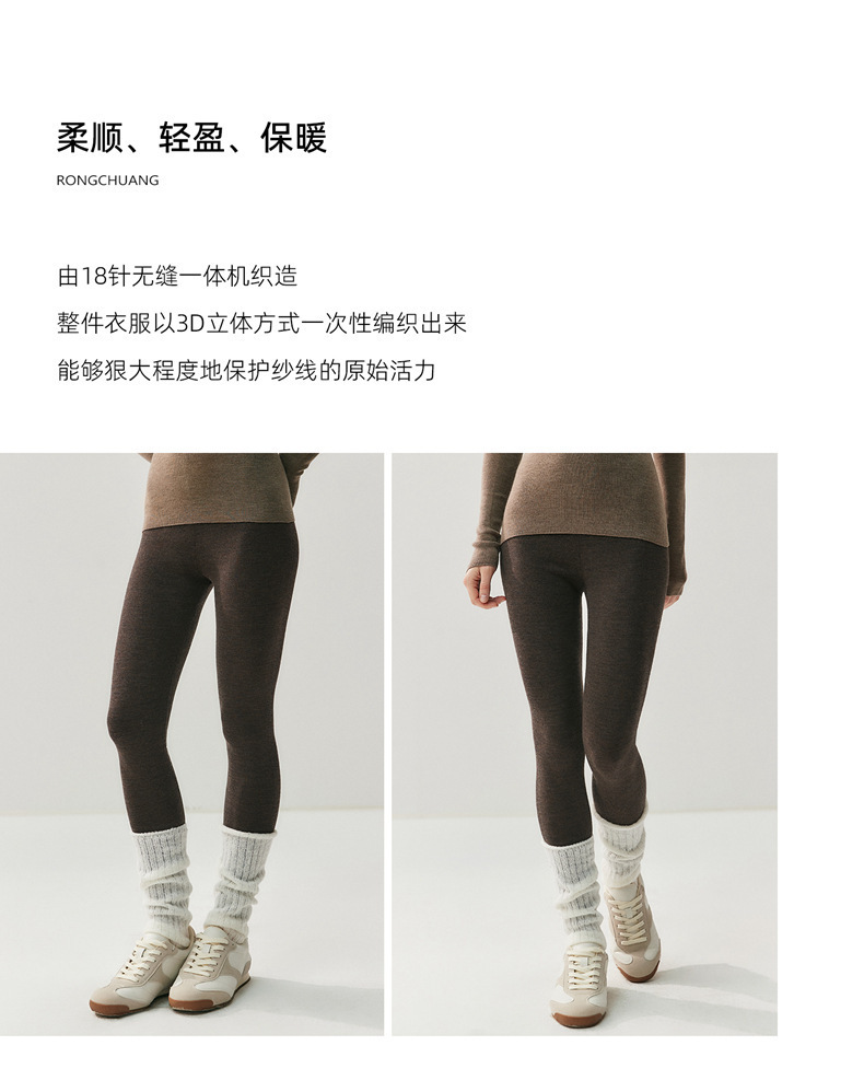 秋冬新款精纺纯羊毛针织无缝打底裤女款高腰显瘦纯色百搭健美裤子