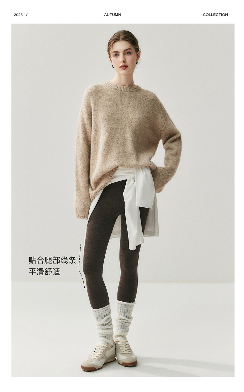软糯保暖女士山羊绒打底裤25秋冬新款平面高弹力收腹针织毛裤