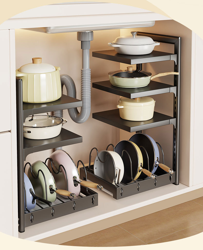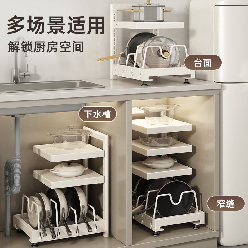 锅具收纳架厨房置物架多功能可调节厨具储物架水槽下多层放锅架子