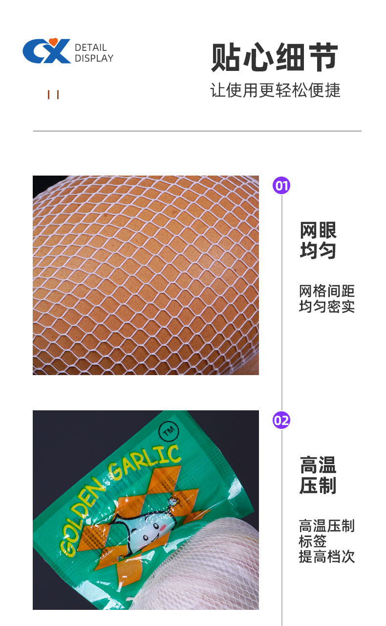 ガーリックメッシュバッグ電子商取引ガーリックメッシュバッグスーパーマーケットパッケージ玉ねぎ馬蹄里芋頭皮卵煮込み卵鶏の足包装オンラインソース