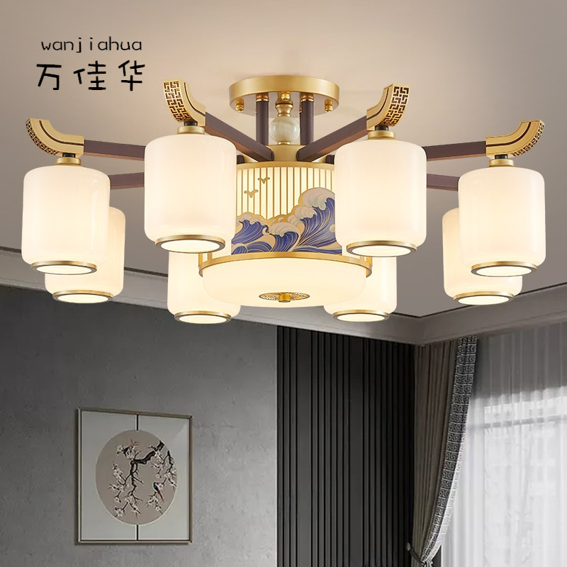 新型新中国式全銅天井灯客間灯シンプル中国風全スペクトル保護眼実木レストラン寝室灯