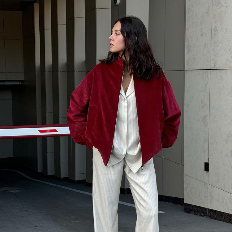 欧美跨境秋冬新款设计感女式夹克气质通勤百搭立领长袖高级感外套