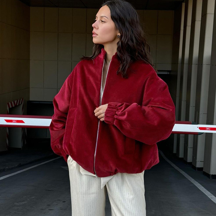 亚马逊外贸女装立领长袖高级感褶皱外套秋冬新款休闲时尚上衣夹克