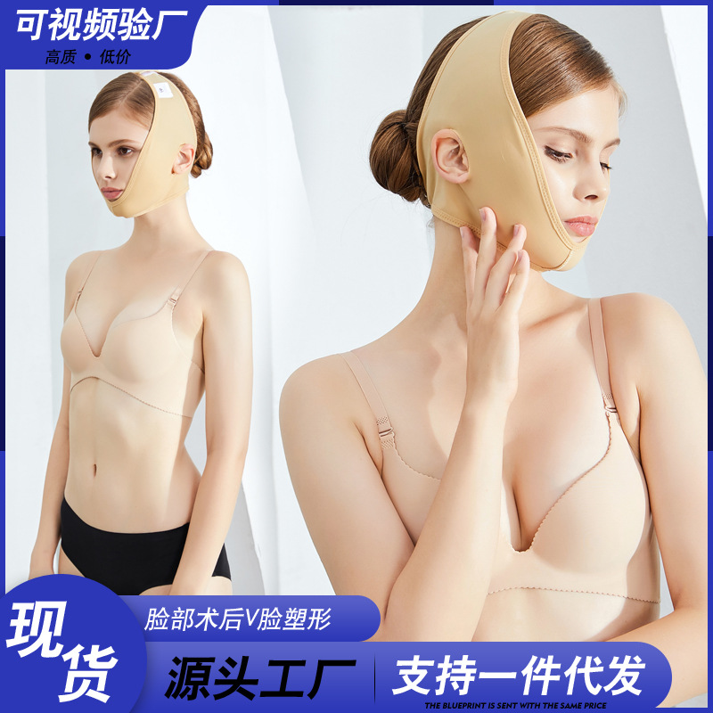 Vフェイス用吸線彫刻ヘッドギア、顔面脂肪吸引術後の補助マスク、二重あご整形リフトアップ弾性包帯