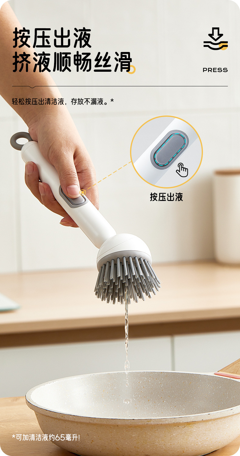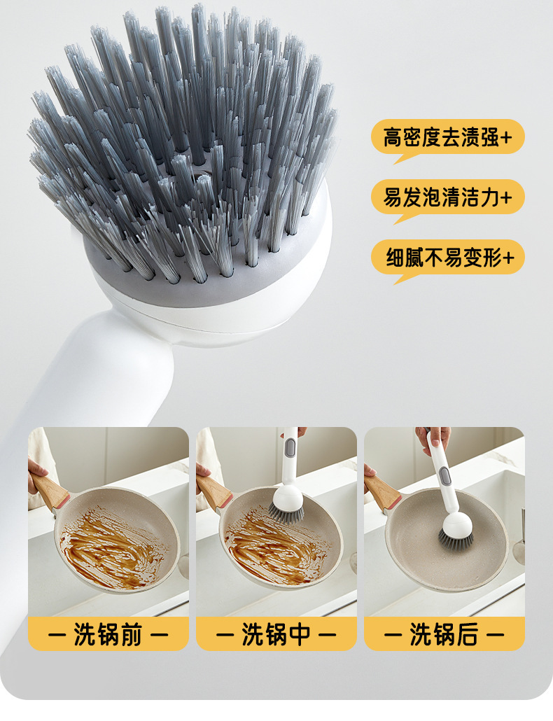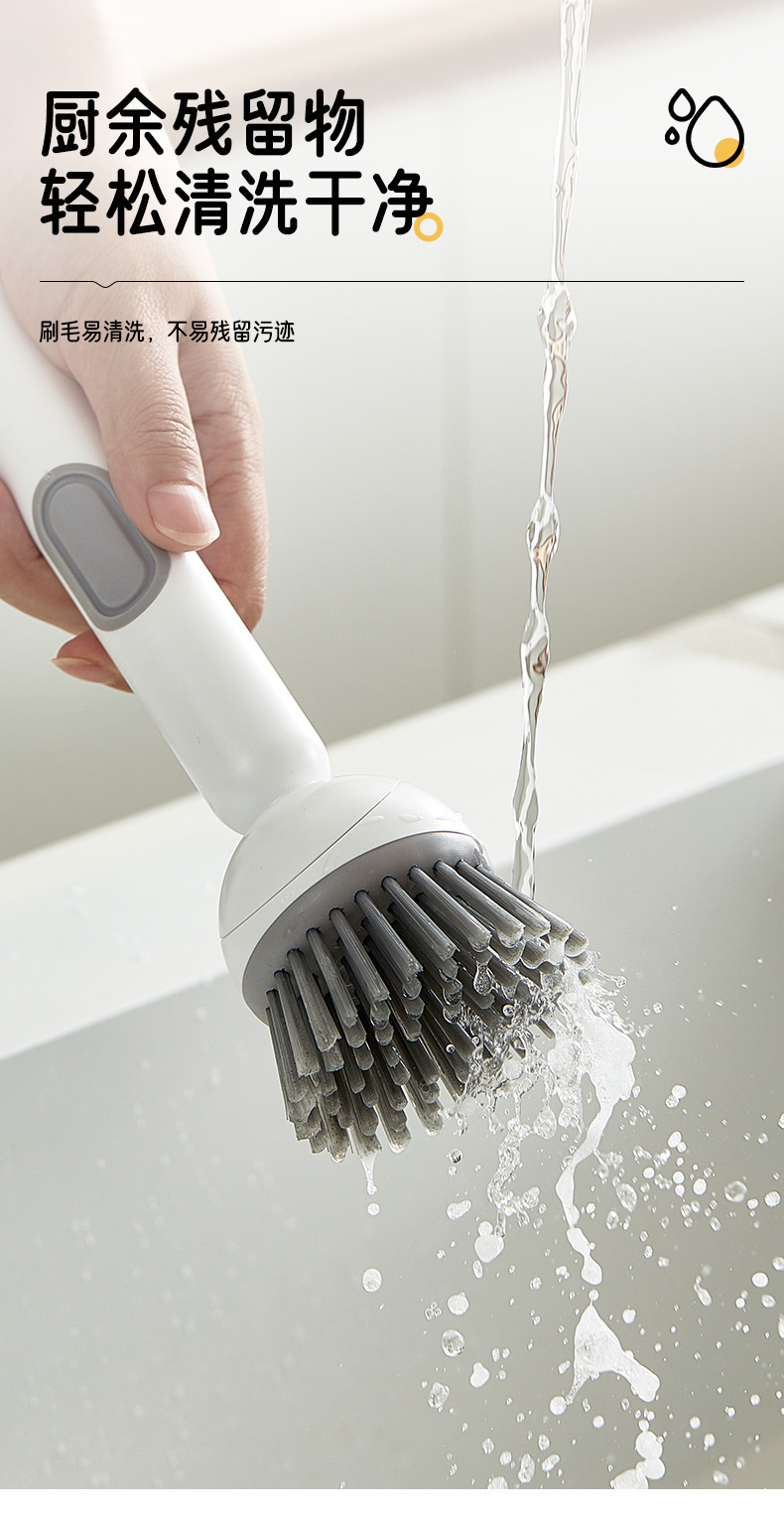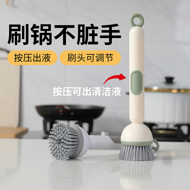 多功能旋转清洁刷按压加液长柄不脏手不伤锅家用厨房洗碗洗锅刷子