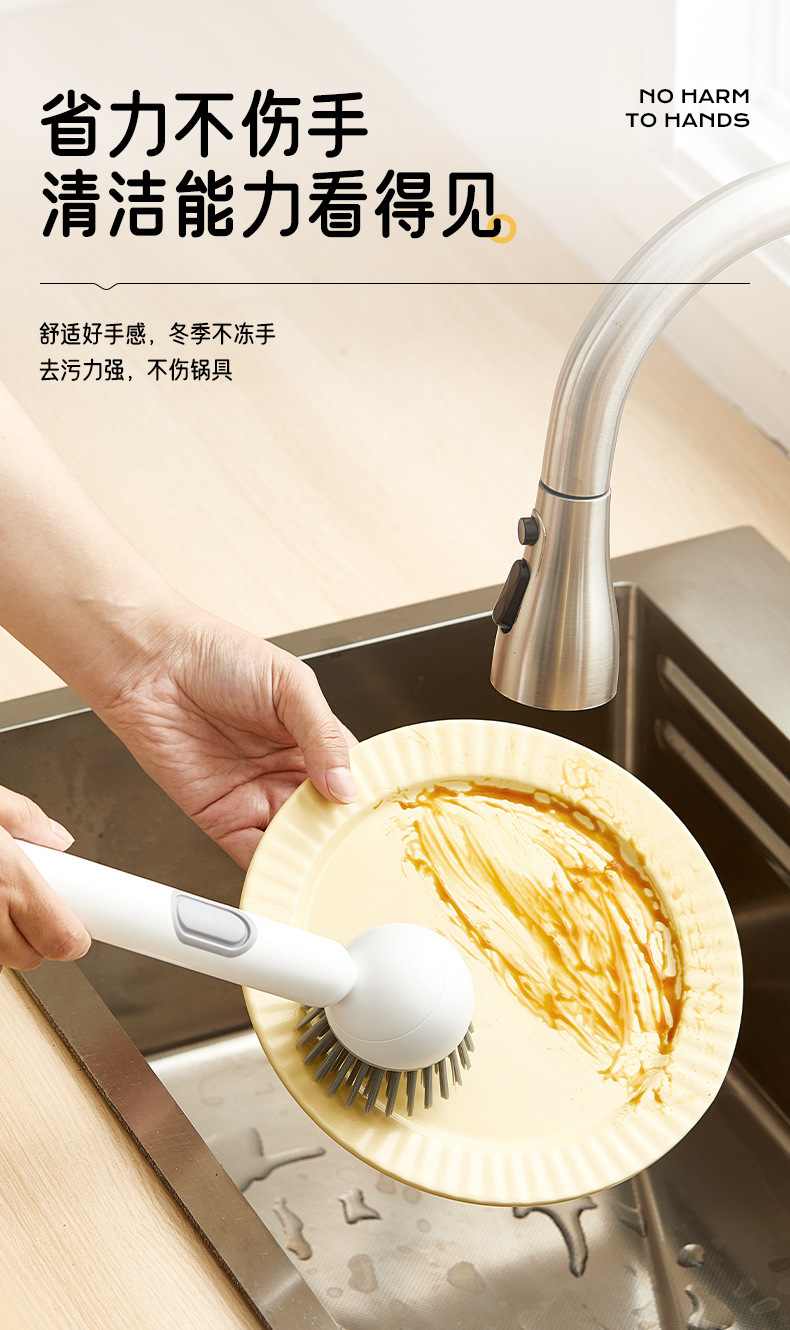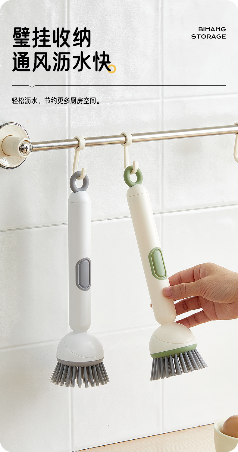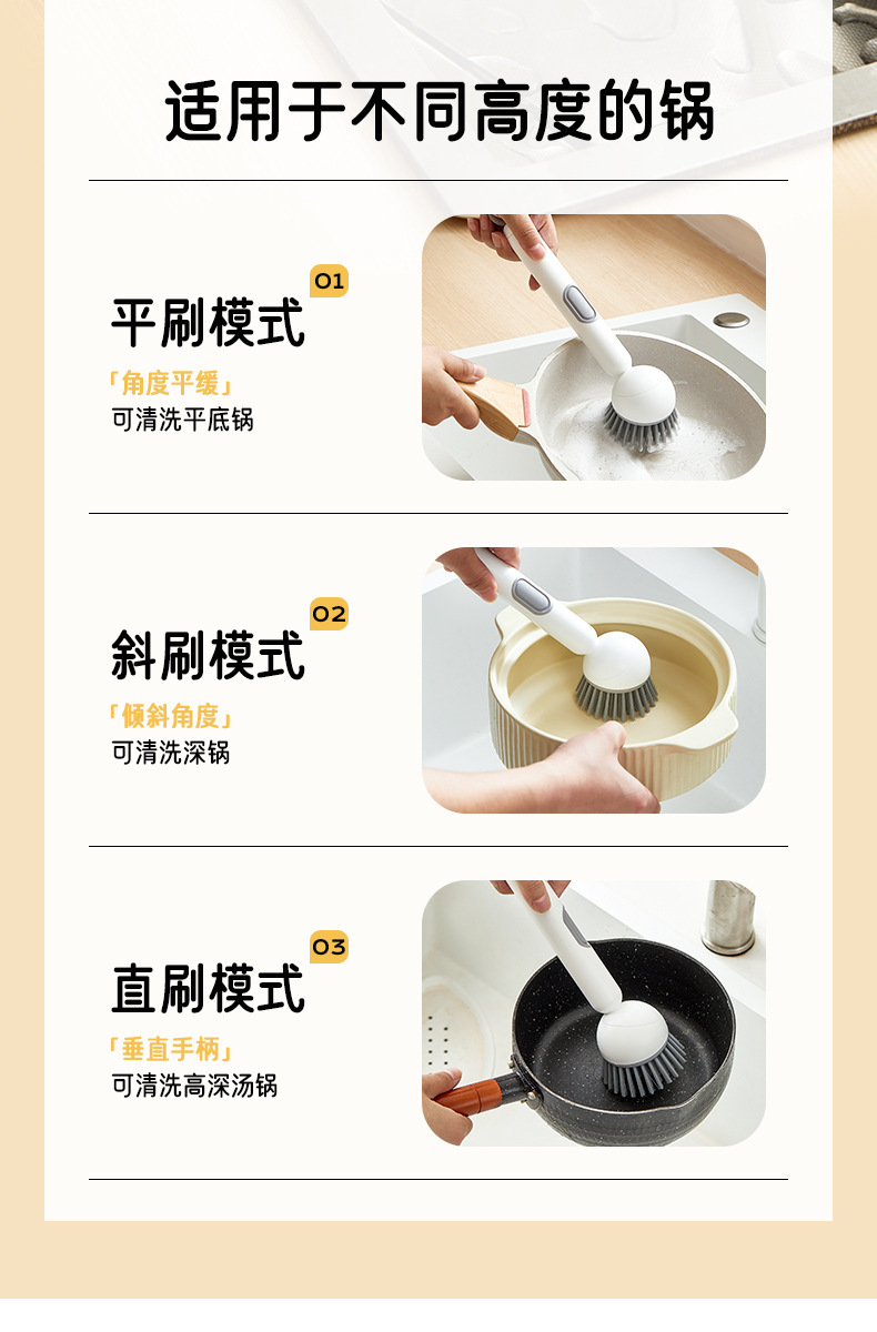多功能旋转清洁刷按压加液长柄不脏手不伤锅家用厨房洗碗洗锅刷子