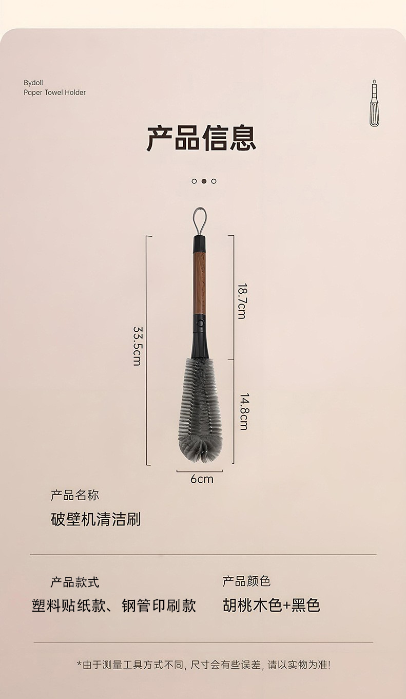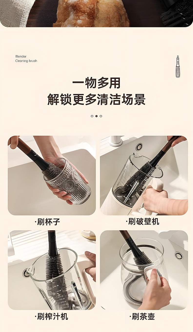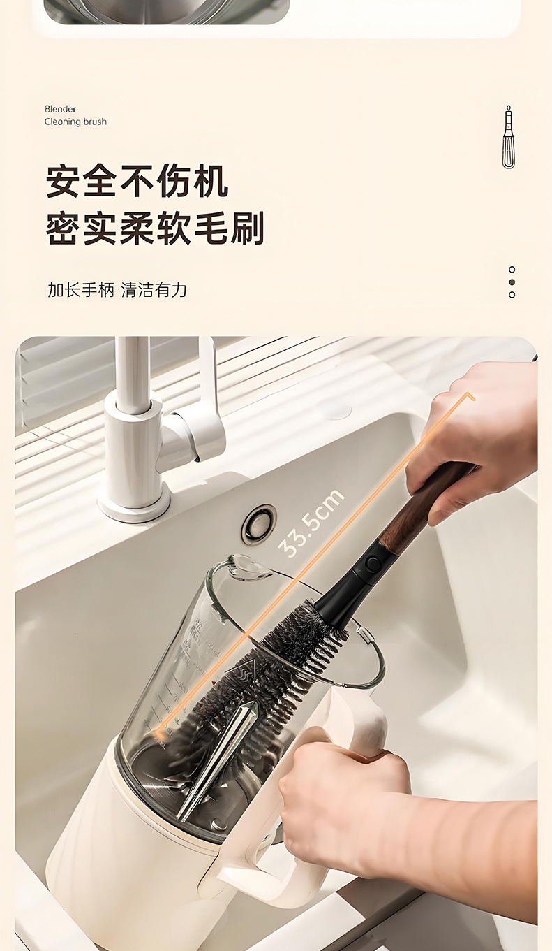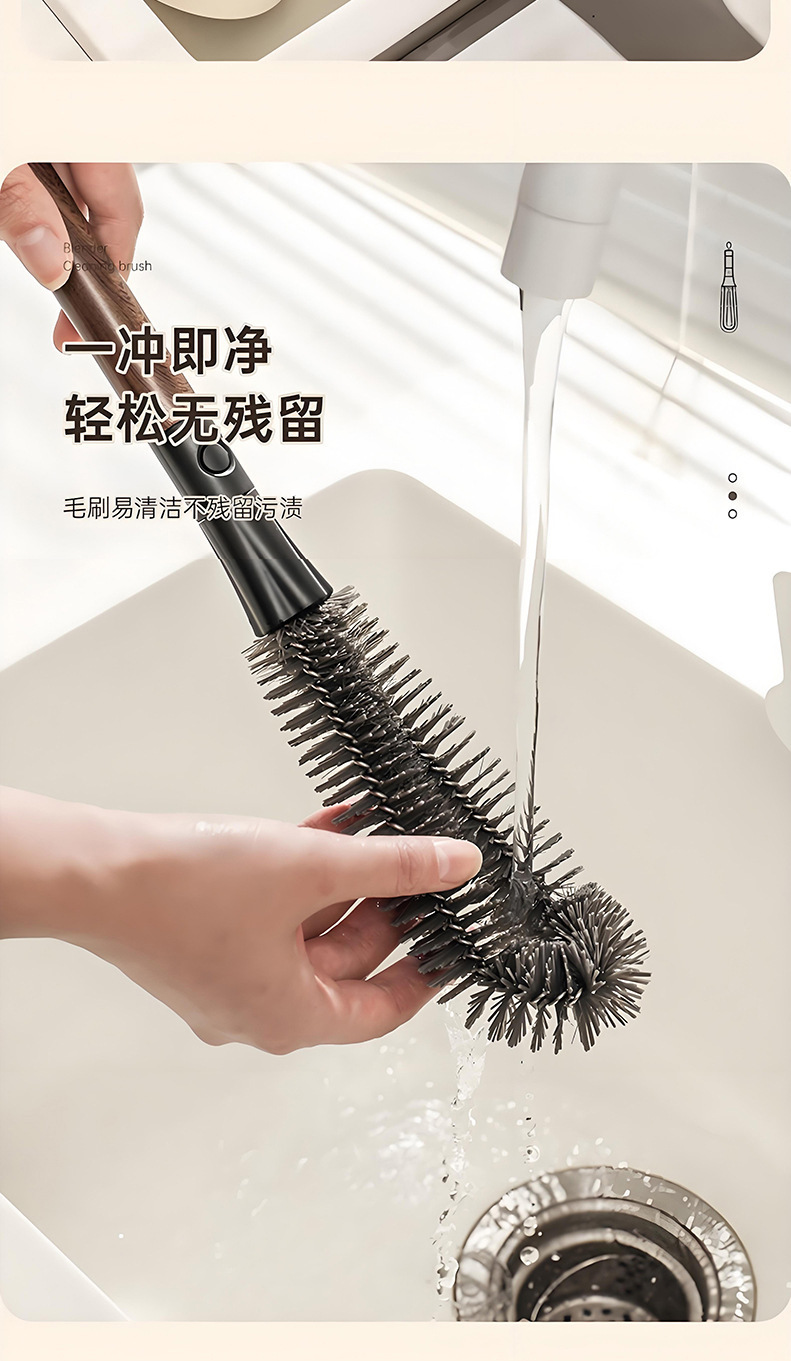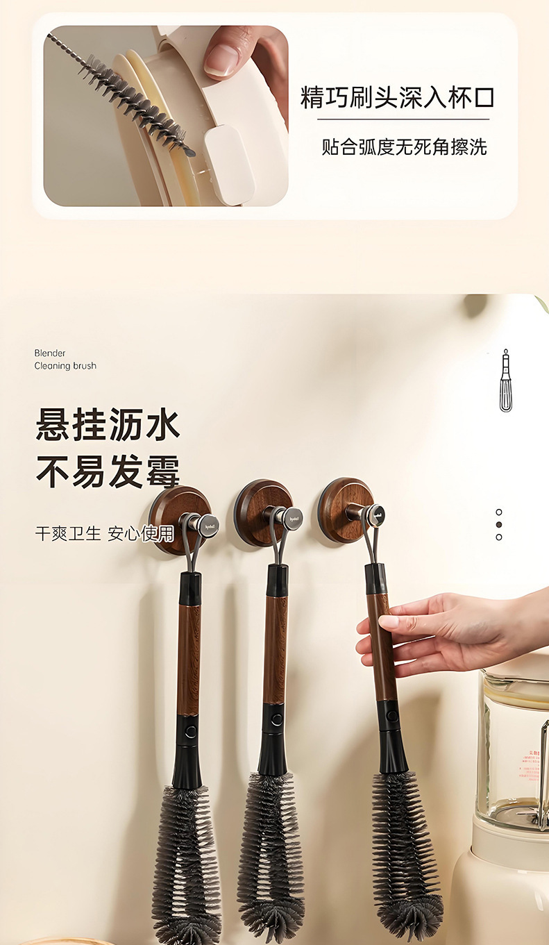 胡桃色二合一瓶口刷长柄可拆卸缝隙刷多功能软毛杯刷破壁机清洗刷