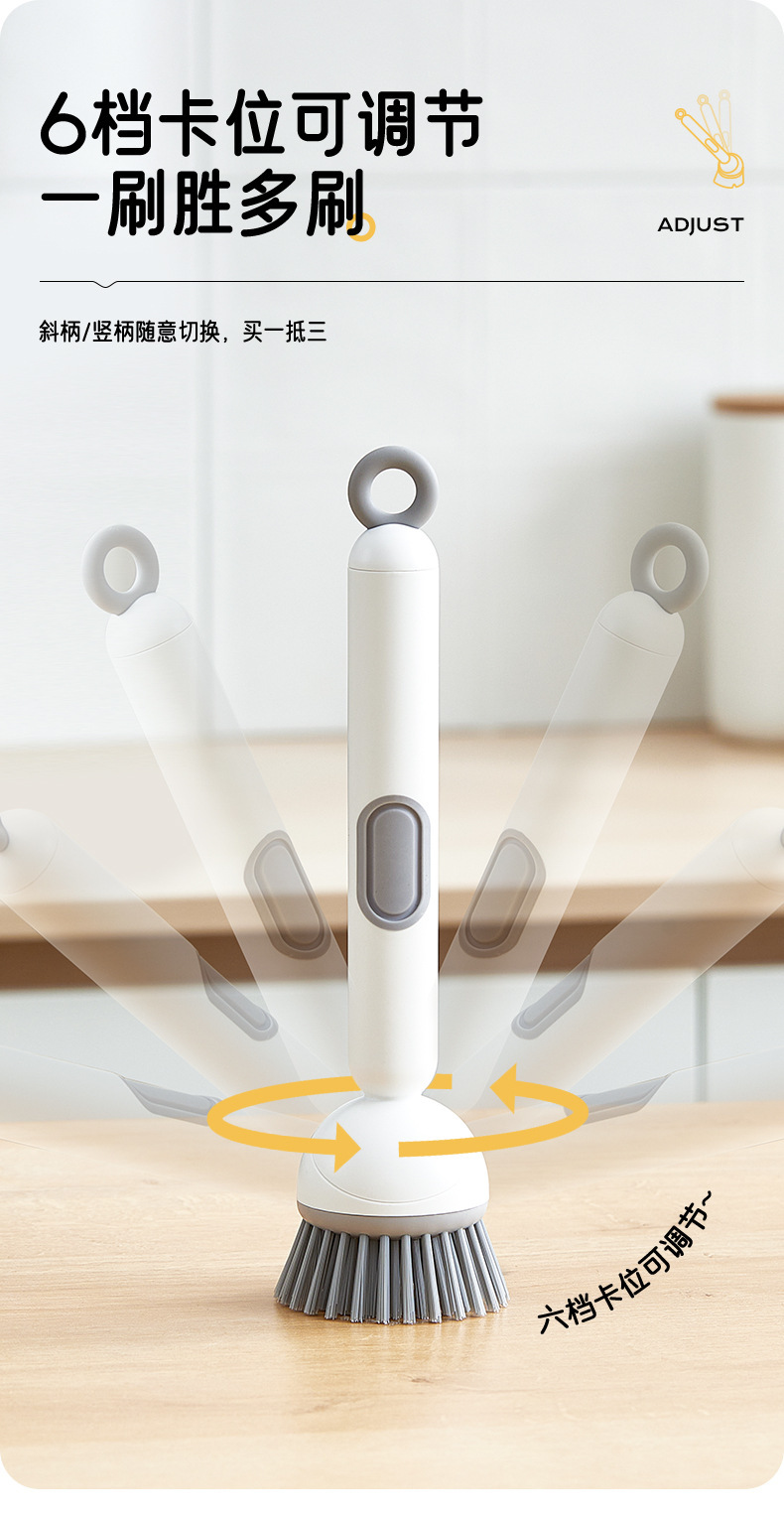 多功能厨房长柄旋转锅刷可调节不伤锅清洁刷加液按压碗刷刷锅杯刷