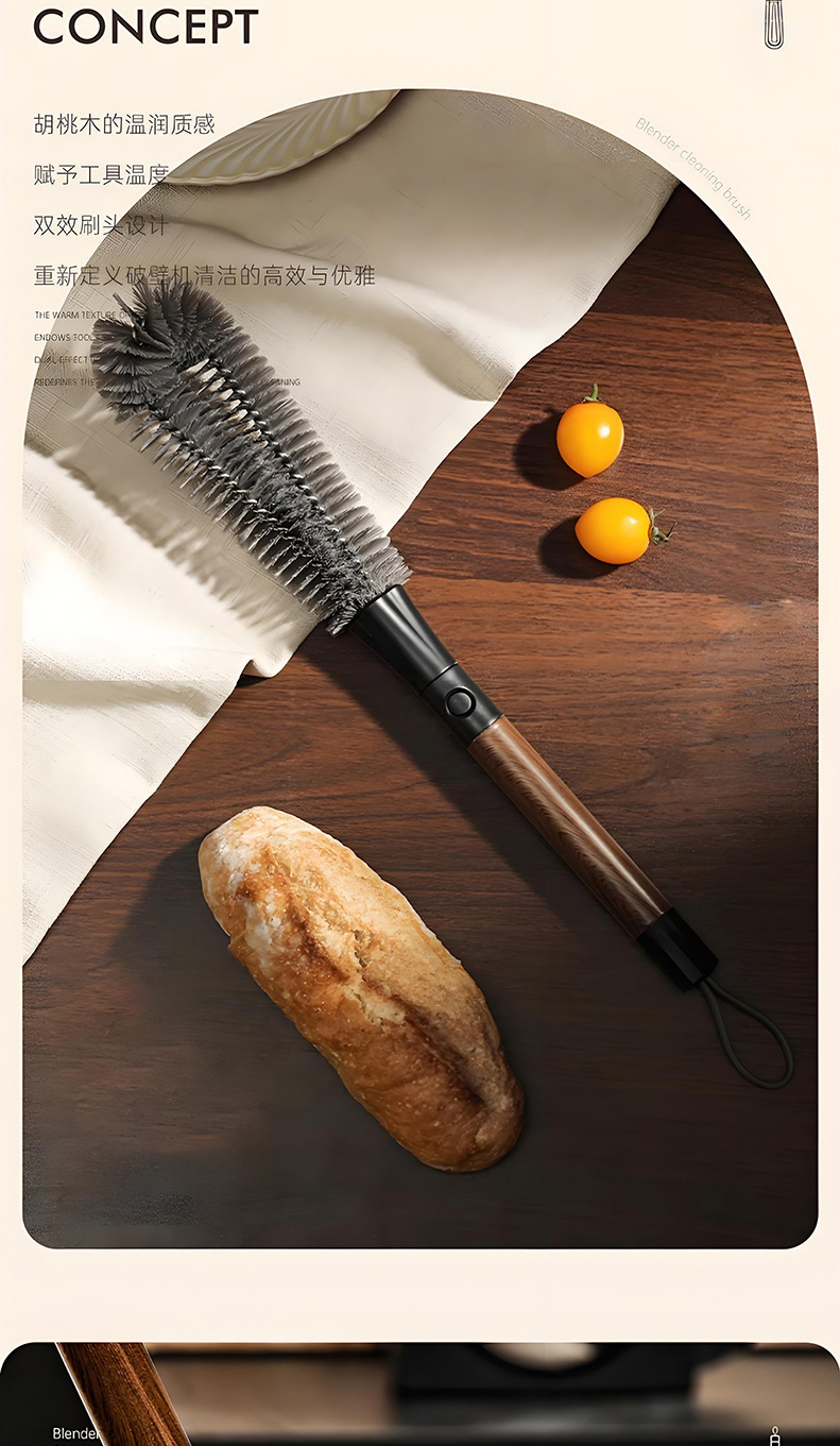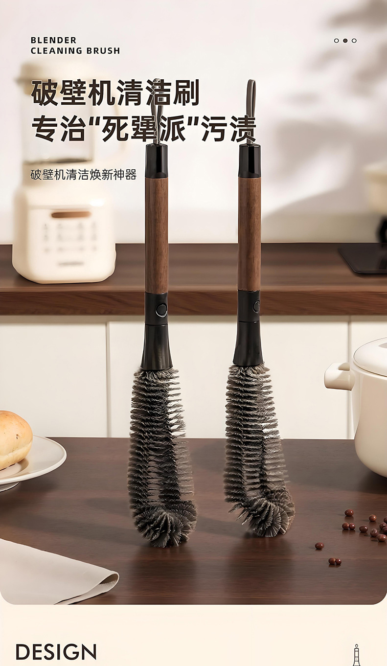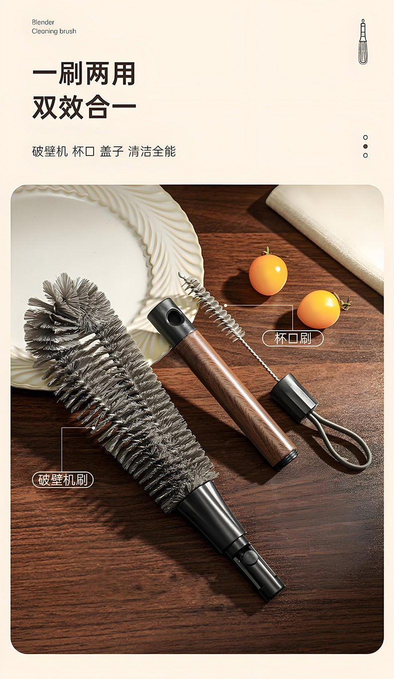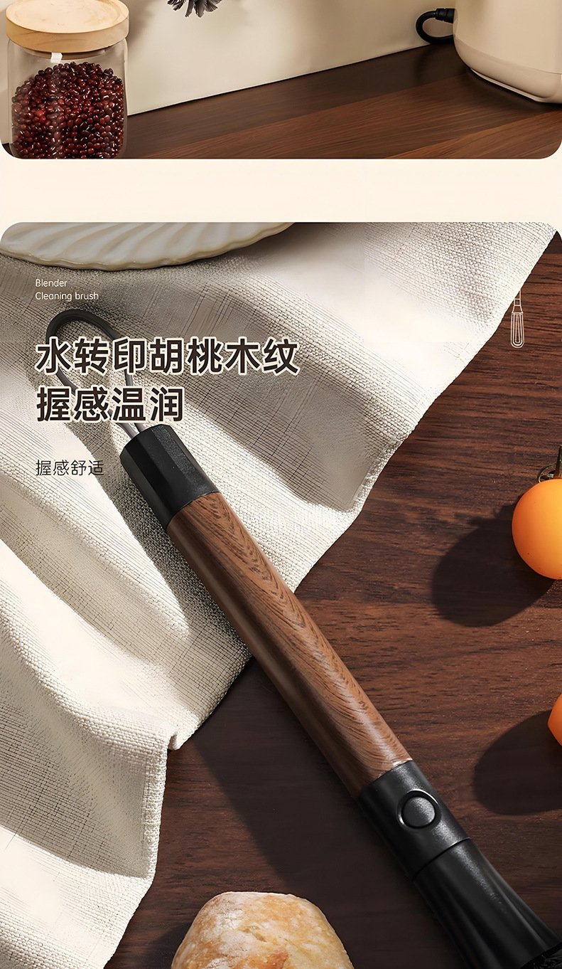 二合一胡桃木纹杯刷家用破壁机清洁刷长柄可拆卸吸管刷杯盖缝隙刷
