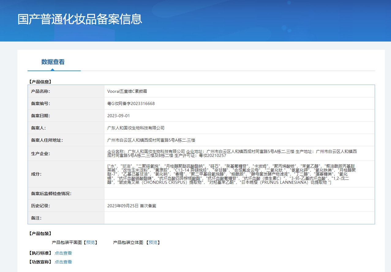 特妆产品名称 Vooral五重维C素颜霜