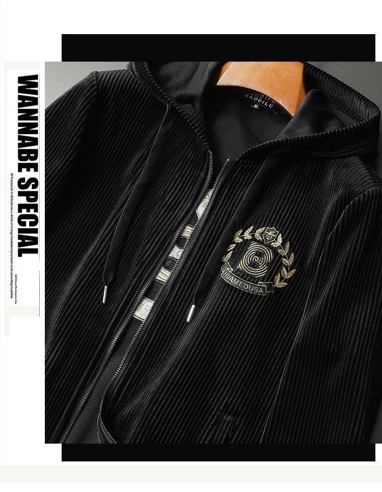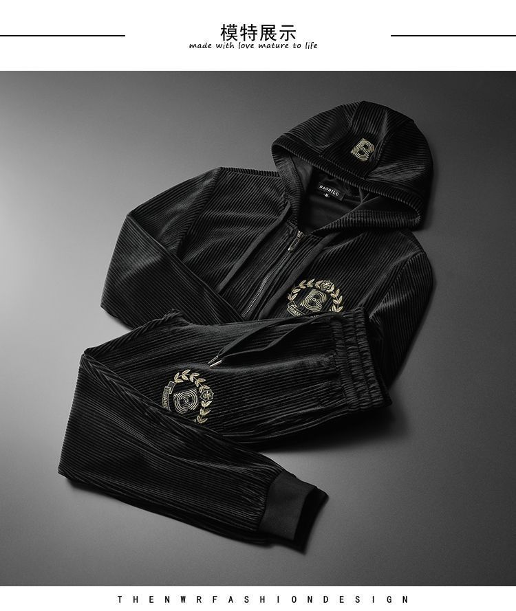 男士潮流金丝绒刺绣套装连帽休闲秋冬新款卫衣大码运动套装两件套