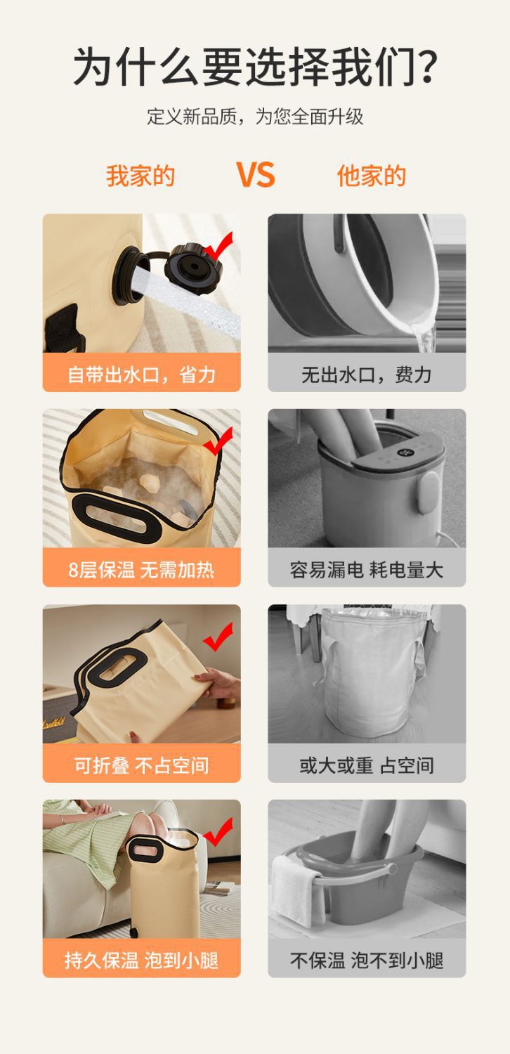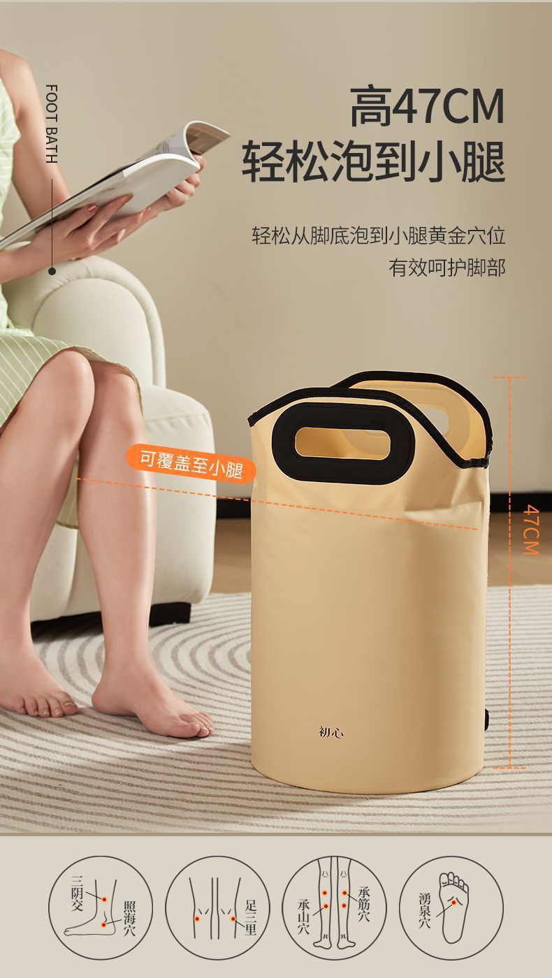初心同款袋家用折叠足浴桶洗脚泡脚折叠式泡脚桶过小腿养生便携式