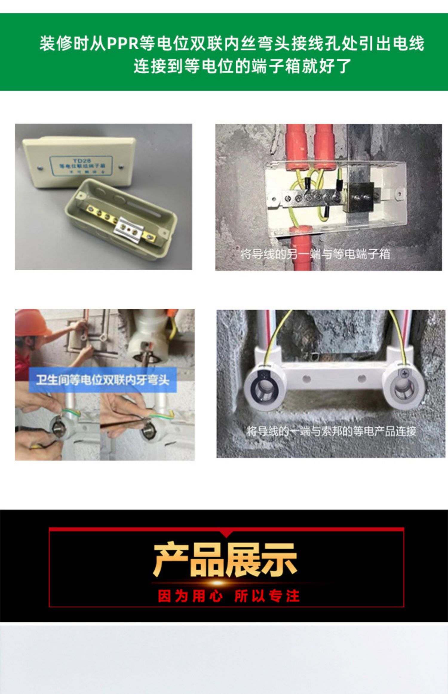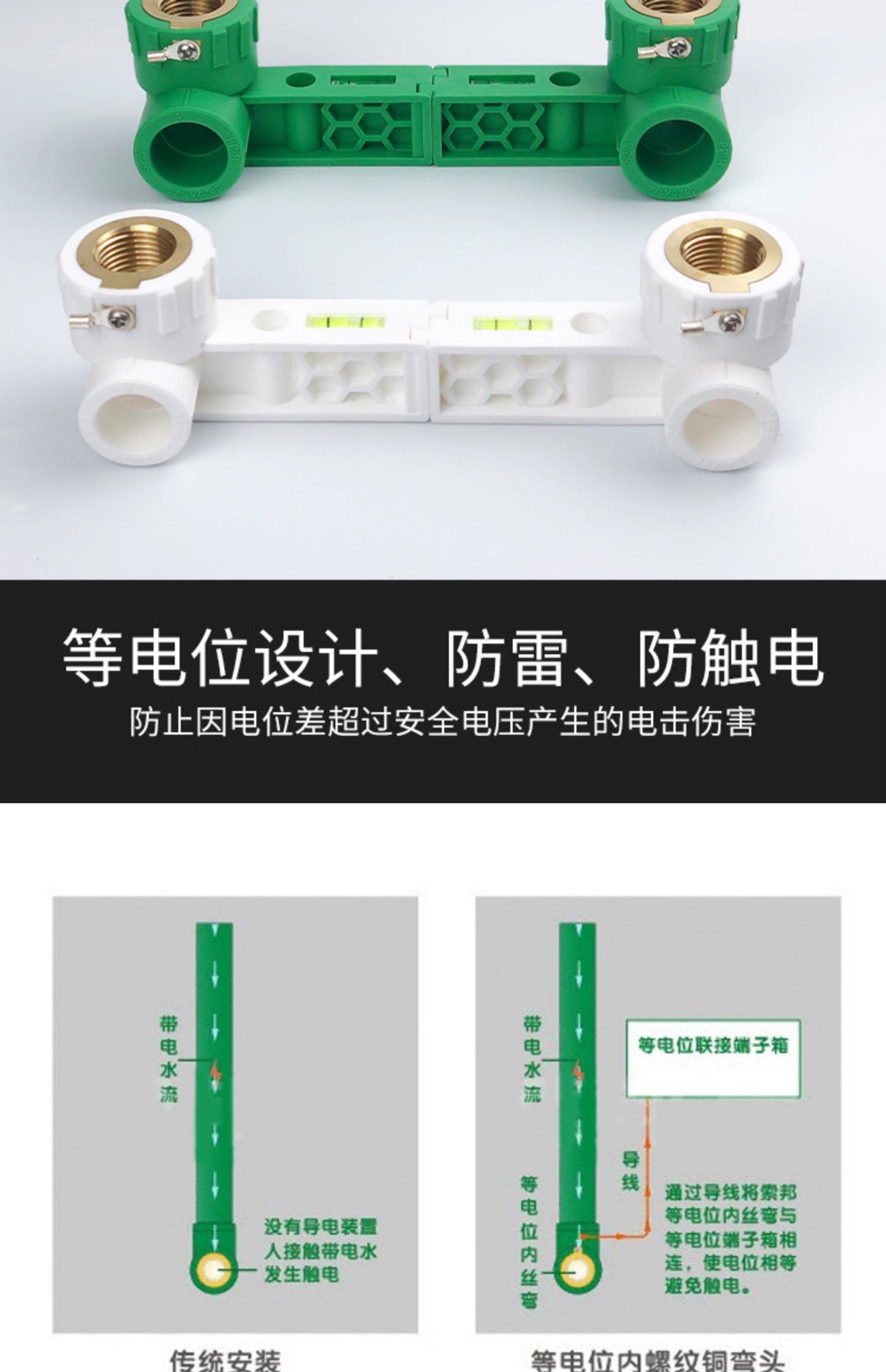 金牛ppr等电位内丝弯头20连体双联带回水弯水管配件接地线防触电