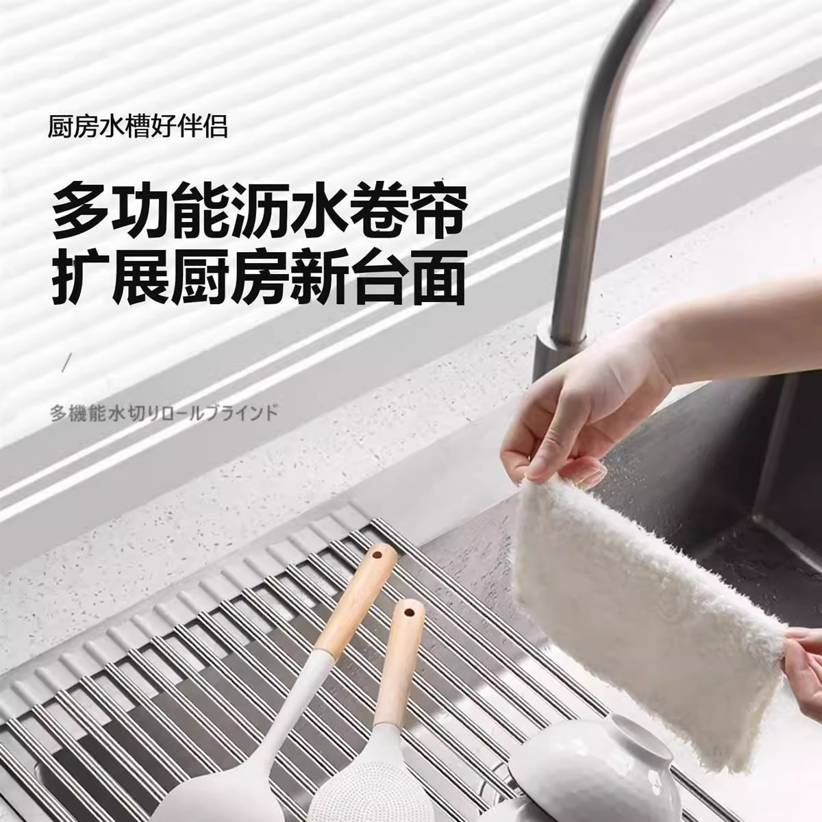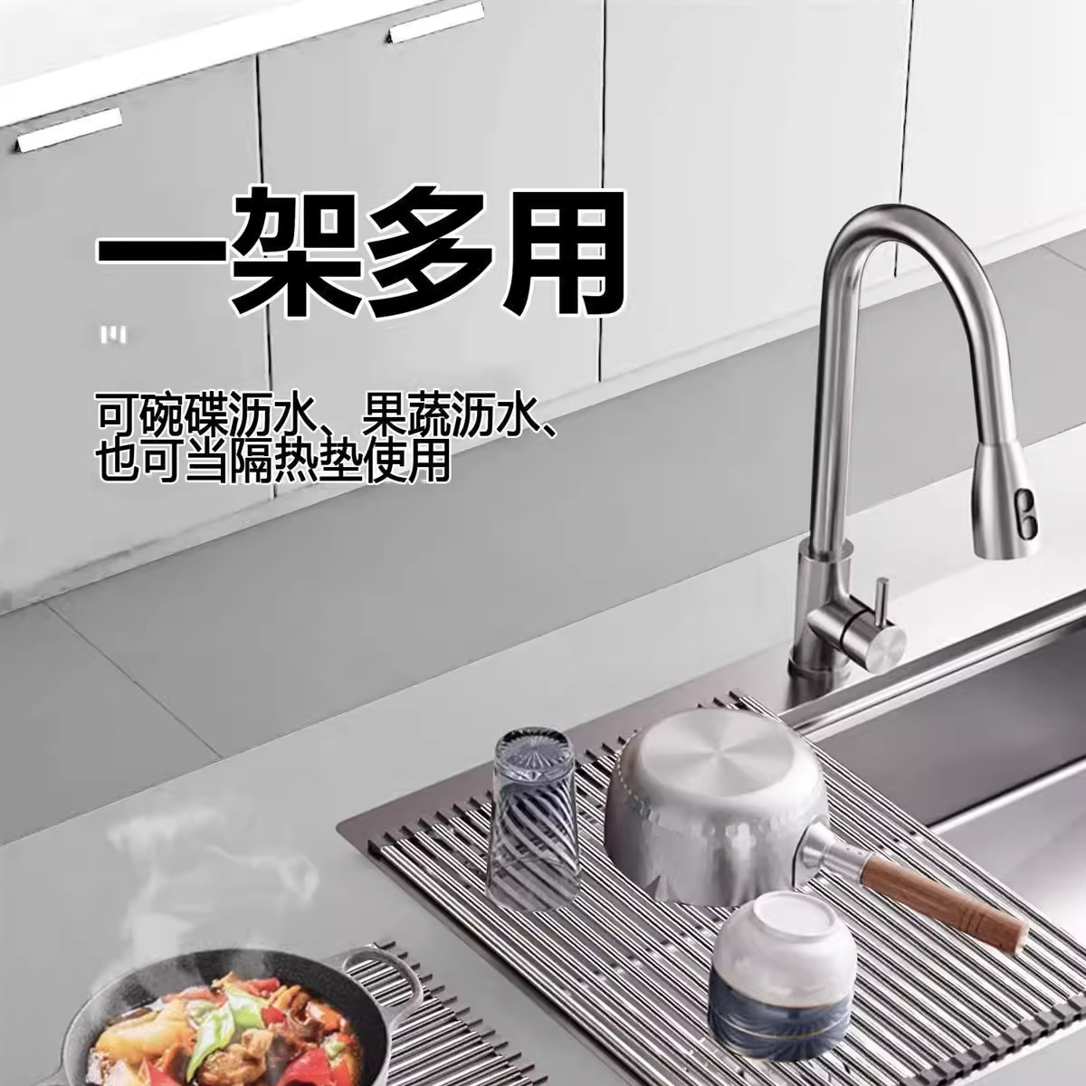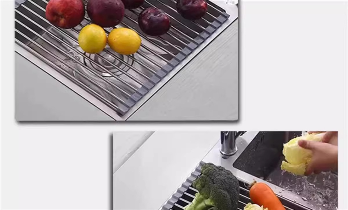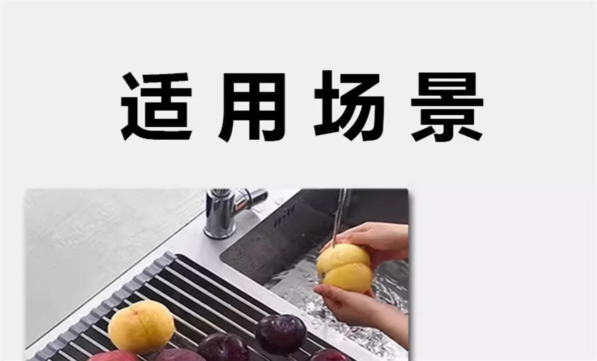 可折叠硅胶厨房水槽沥水架卷帘置物架可卷水池隔热碗筷果蔬滤水架