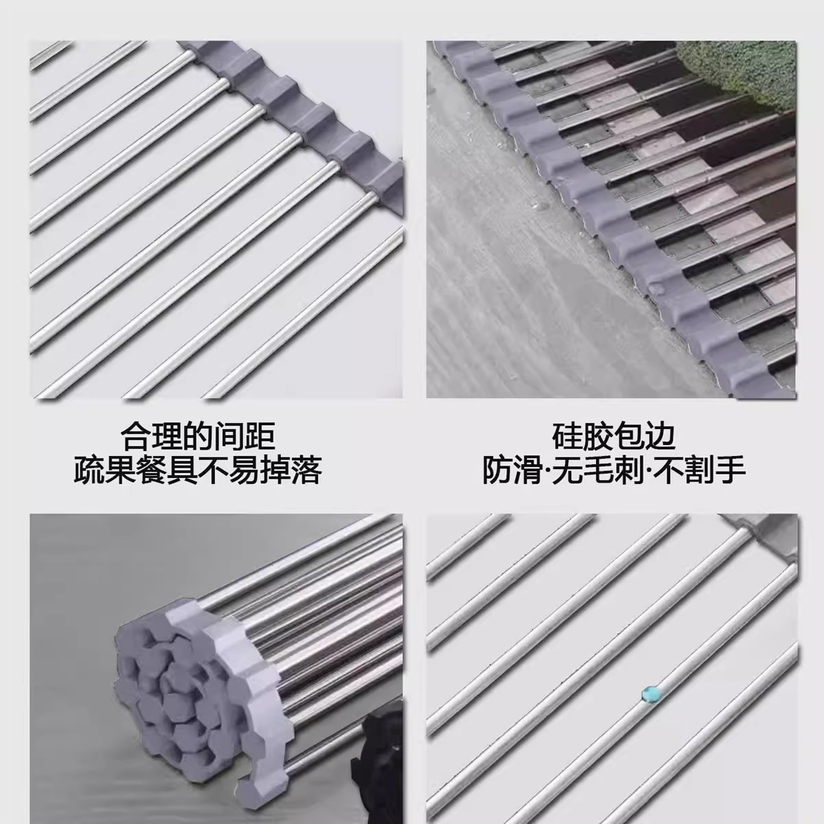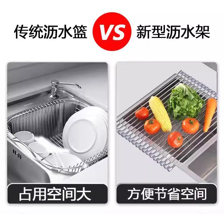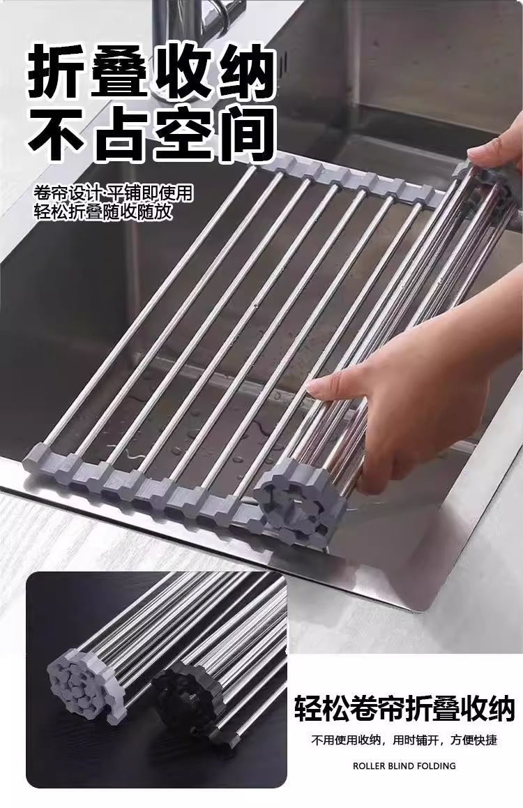 不锈钢折叠沥水架硅胶滤水架卷帘水槽碗筷果蔬收纳架子厨房置物架