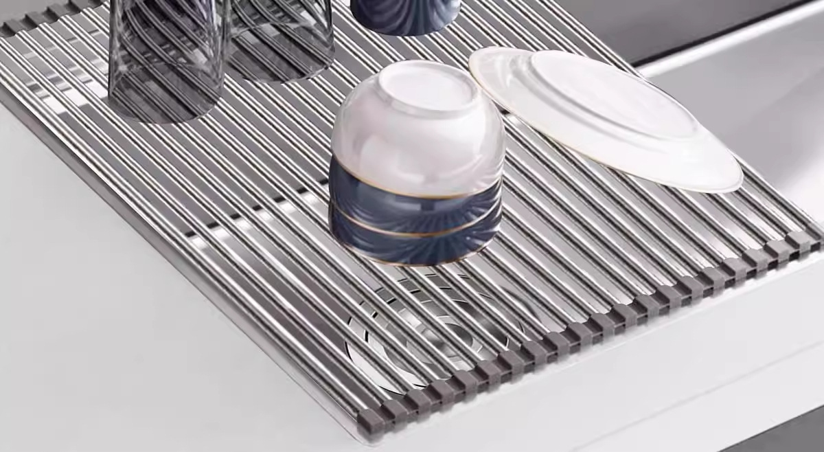 ステンレス製排水ラックキッチン収納ラックローラーシャッターシンク排水ローラーシャッター折りたたみシンク食器収納ラック