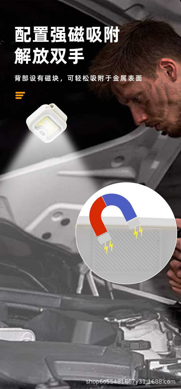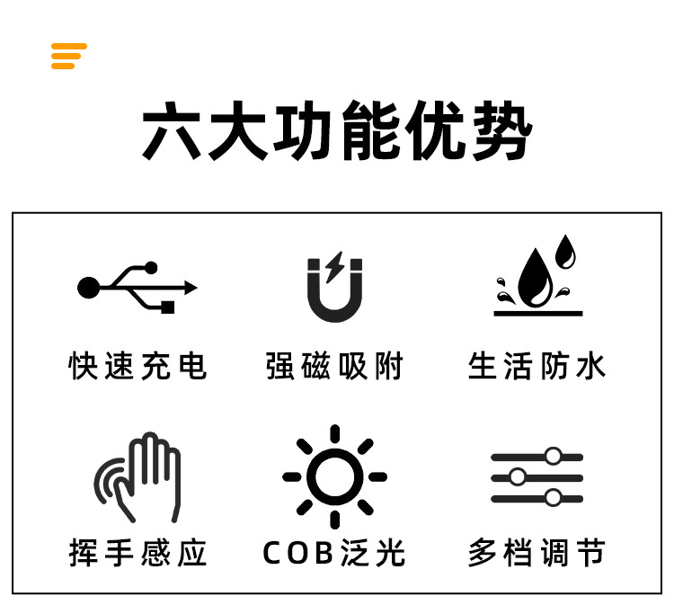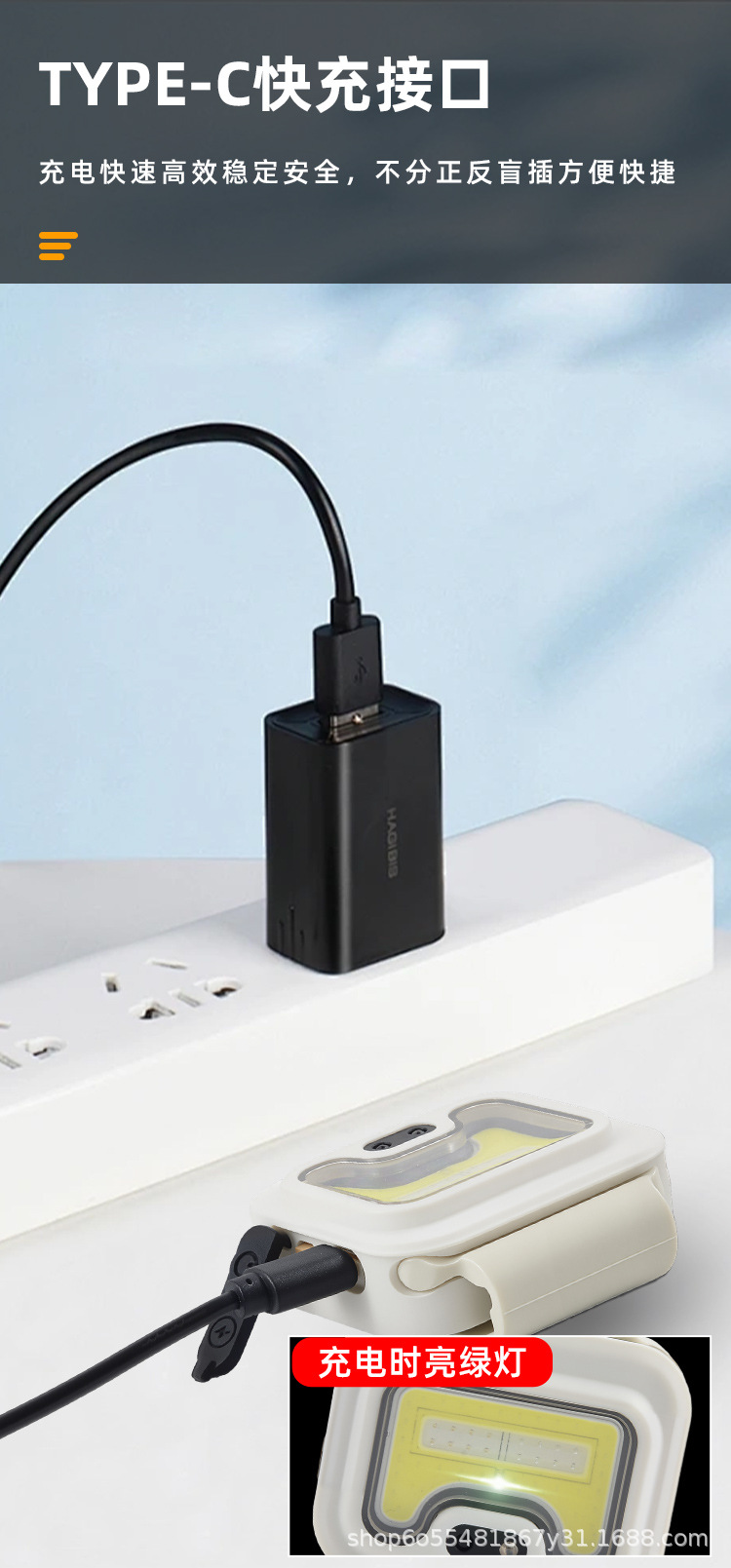 多功能带磁吸夜钓Type-C充电头灯 便携衣夹跑步COB硅胶工作灯头戴