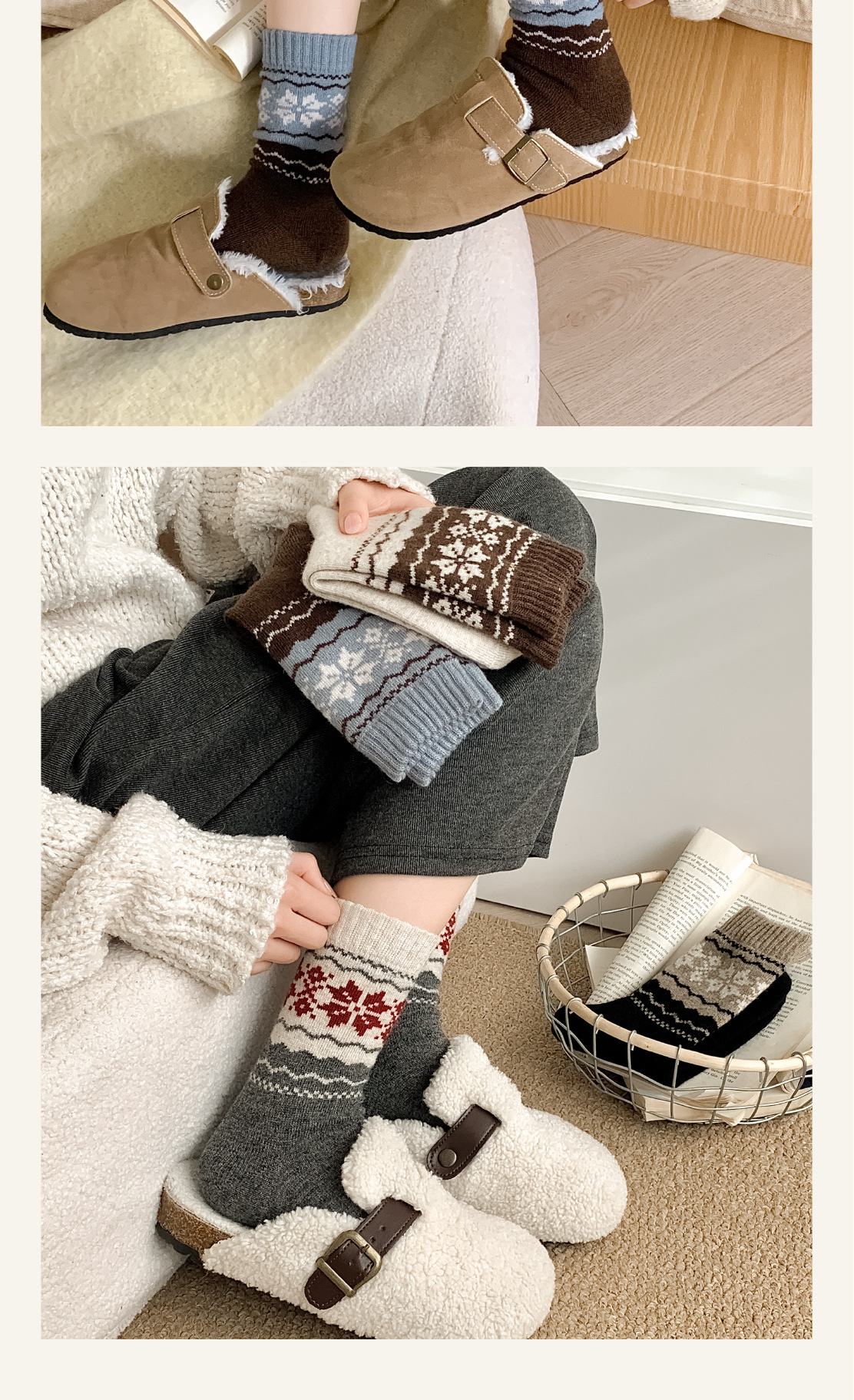 潮流费尔岛羊毛袜秋冬韩系少女甜美堆堆袜拼色中筒袜加绒加厚保暖