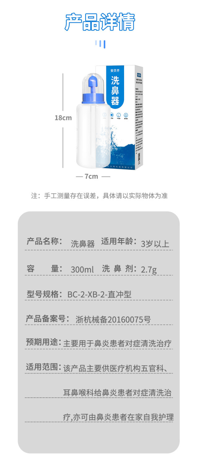 货号 300ml【直冲型】+送温度贴,300ml【直冲型】+洗鼻豪华套餐,300ml【弯头】+送温度贴,300ml【弯头型】+洗鼻豪华套餐,【2.7g洗鼻盐】1盒(30包),【2.7g洗鼻盐】2盒(60包),【2.7g洗鼻盐】3盒(90包)