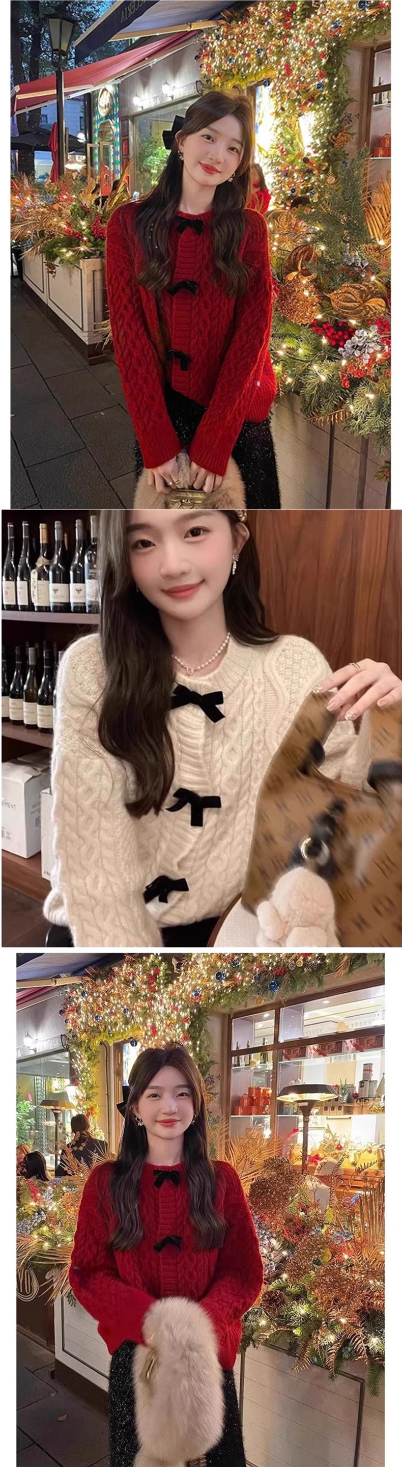 实价#绵羊绒#蝴蝶结麻花毛衣外套女秋冬慵懒宽松新年外穿针织开衫