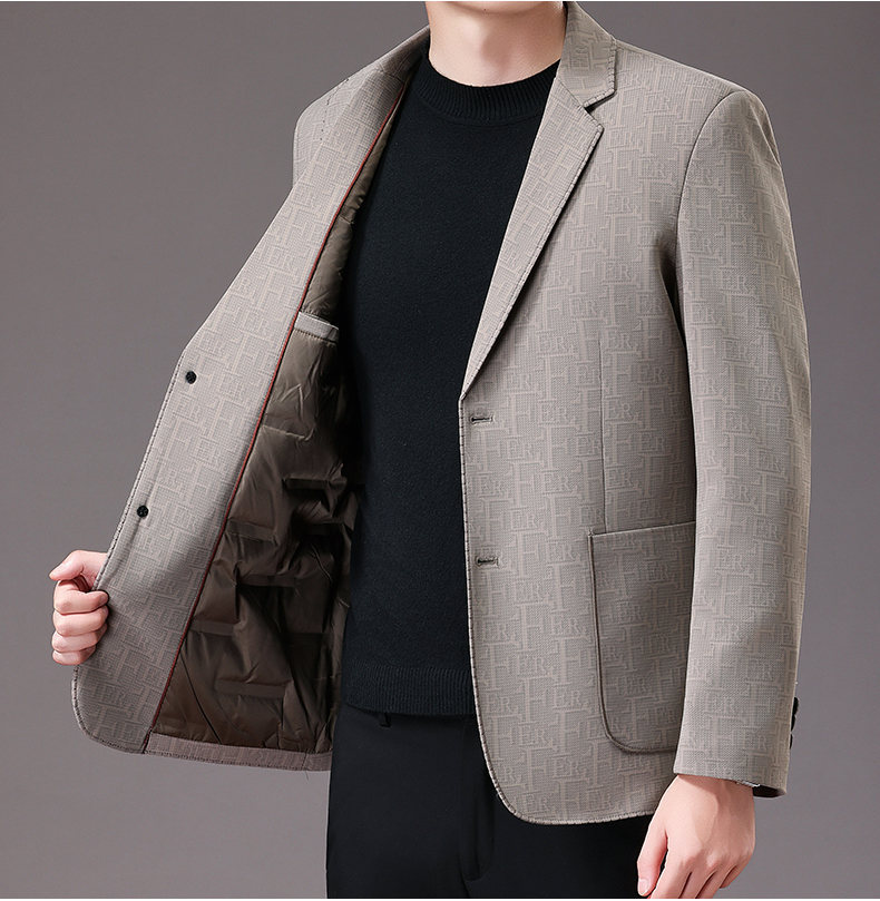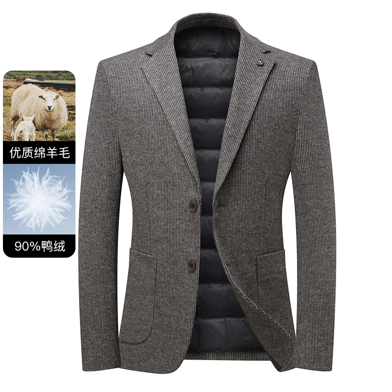 男士80绒西服2025秋冬新款男装中年商务休闲百搭保暖羽绒西装外套
