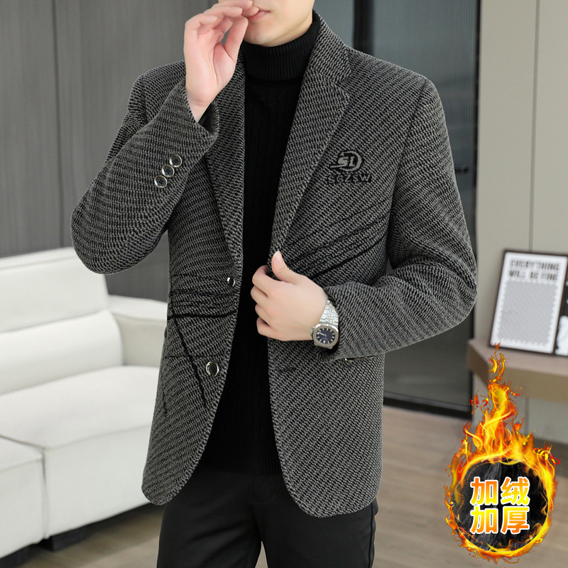 男士加厚毛呢西服2025秋冬新款男装中年商务休闲韩版修身西装外套