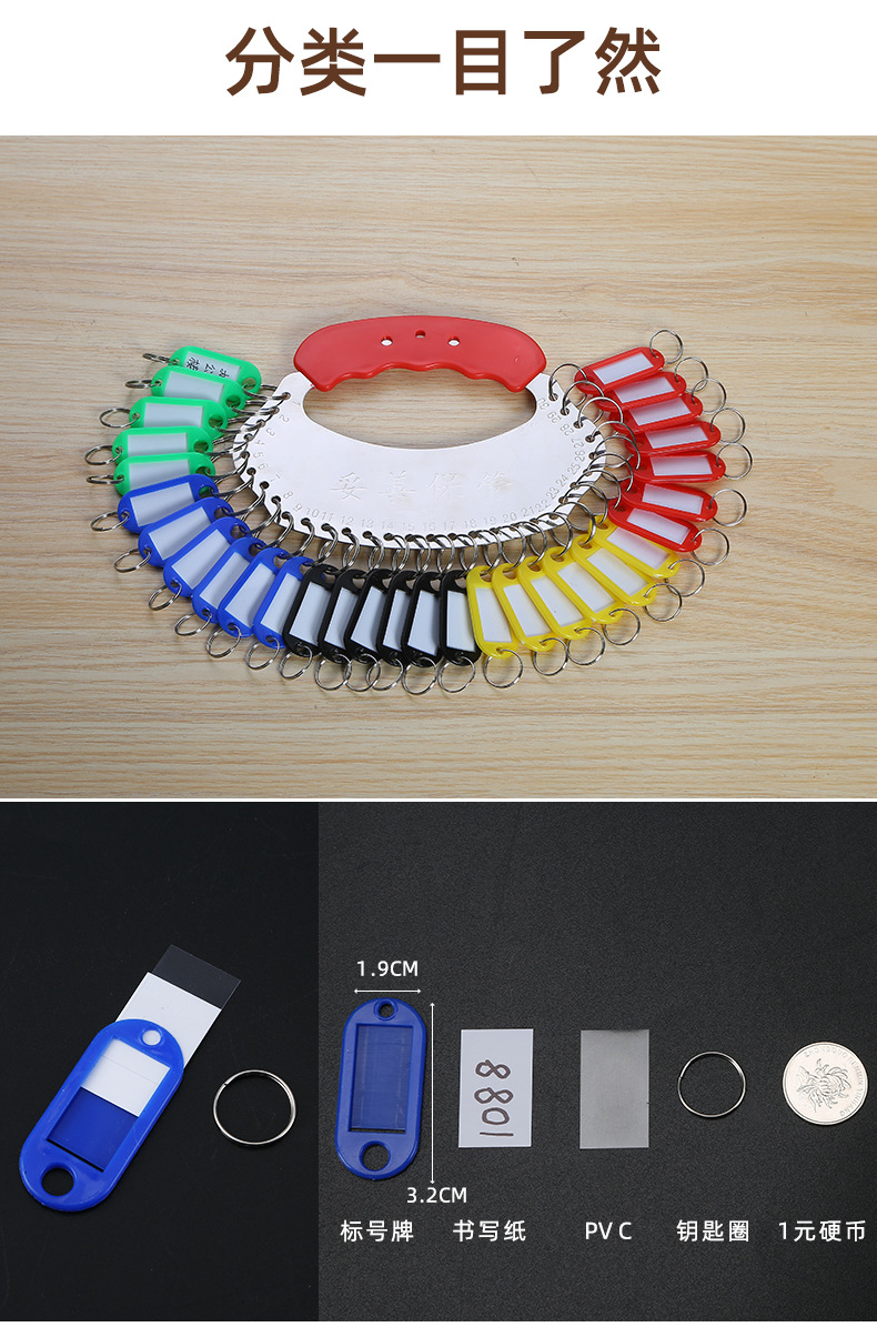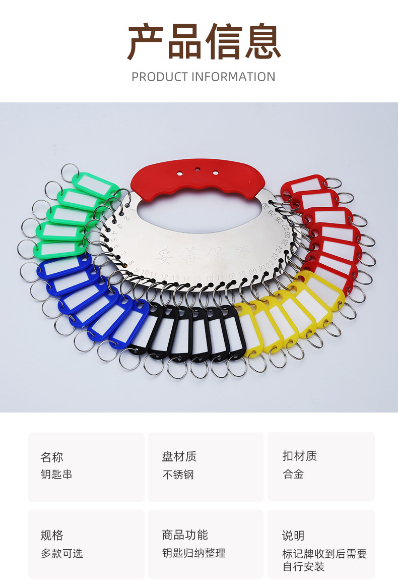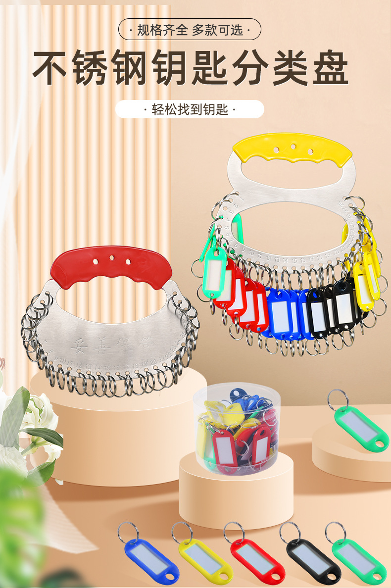 不锈钢钥匙盘收纳可标记中介钥匙环扣分类钥匙圈板锁匙牌串出租房