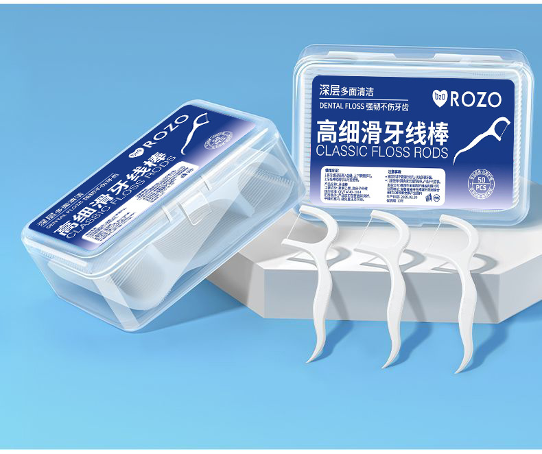 牙线50支盒装超细牙线棒便携盒装剔牙线家庭装塑料牙签弯弓形代发