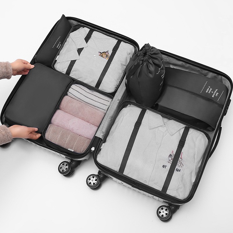 旅行用収納8点セット、衣類の梱包、整理、収納バッグ、ポータブル収納バッグ、スーツケース、7点セット、マルチピース