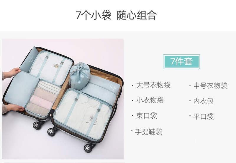 跨境亚马逊爆款旅行收纳包七件套旅游分类洗漱包行李包束口袋套装