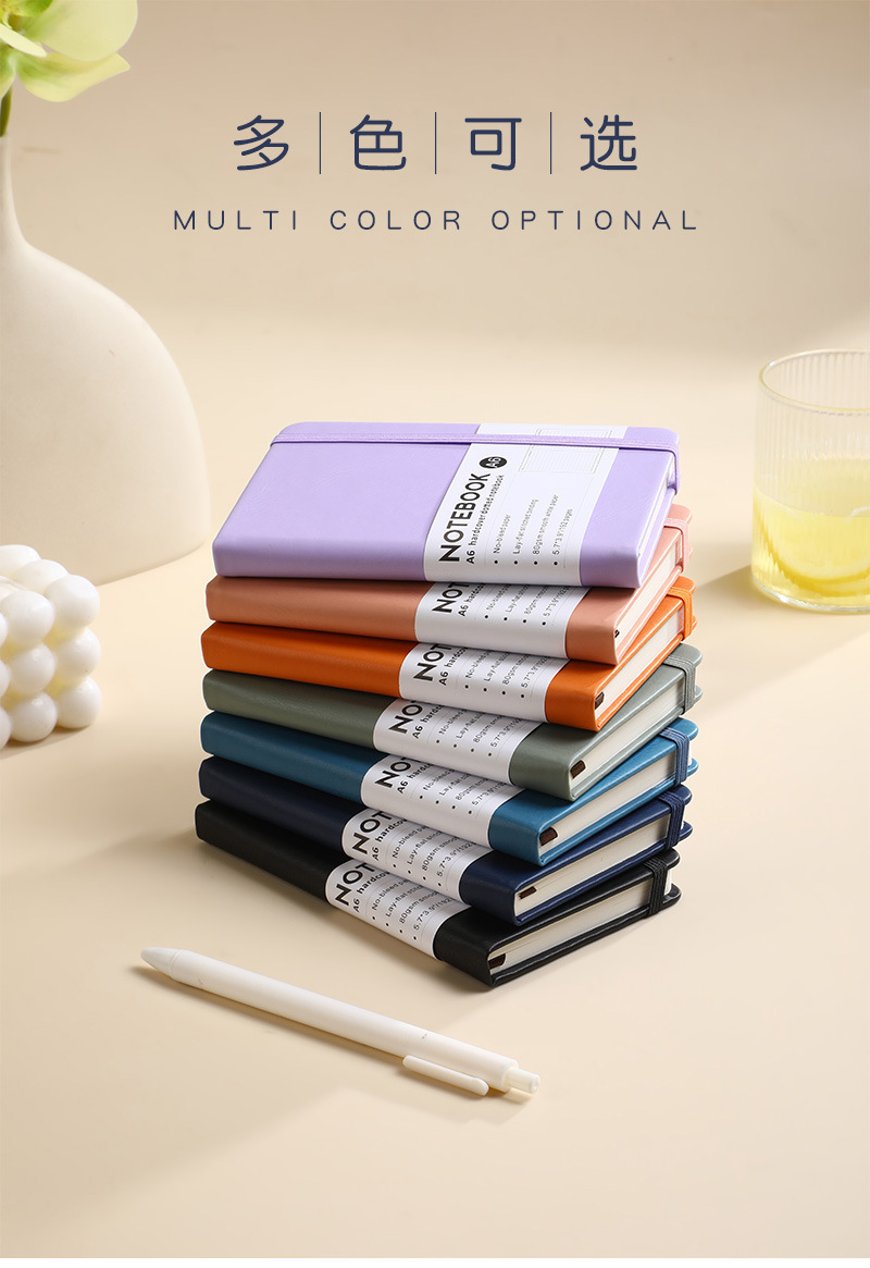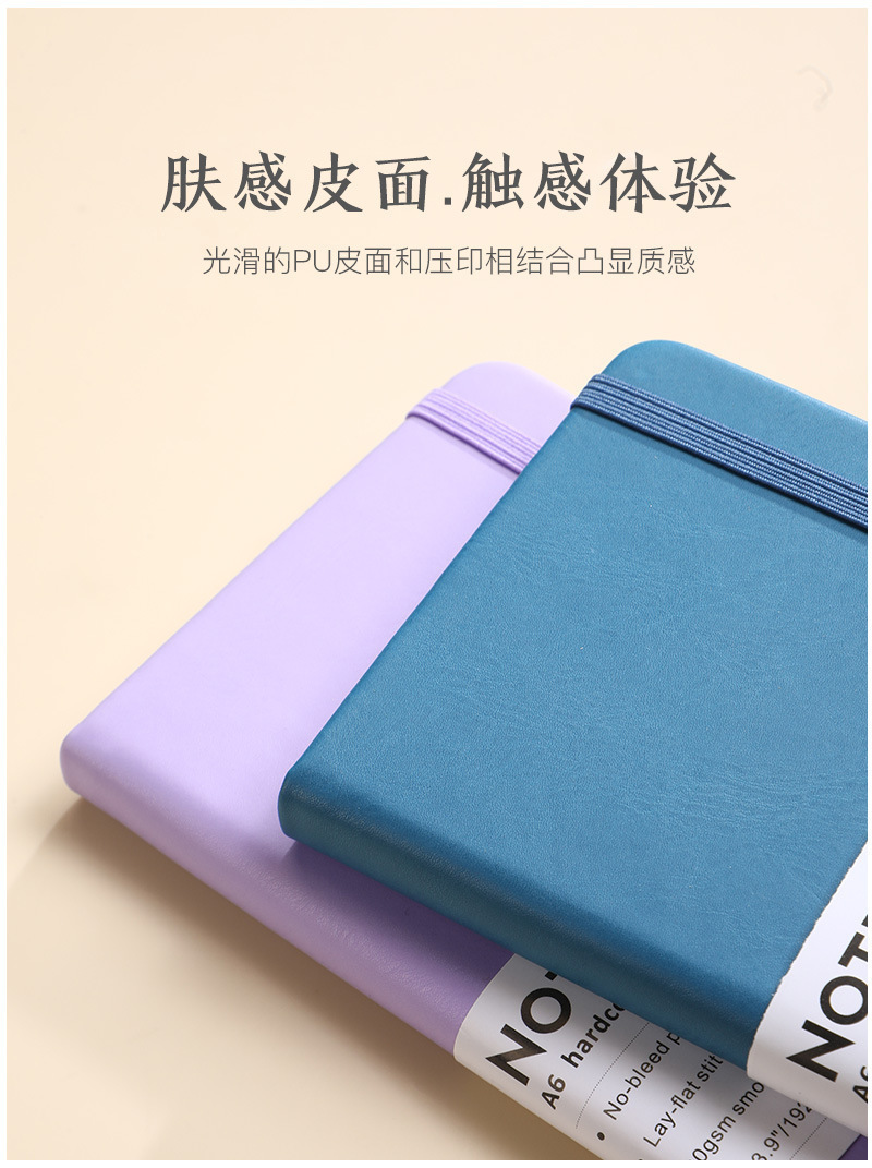 厂家记事本子PU皮质绑带马卡龙高A6商务办公笔记本定制可压印logo