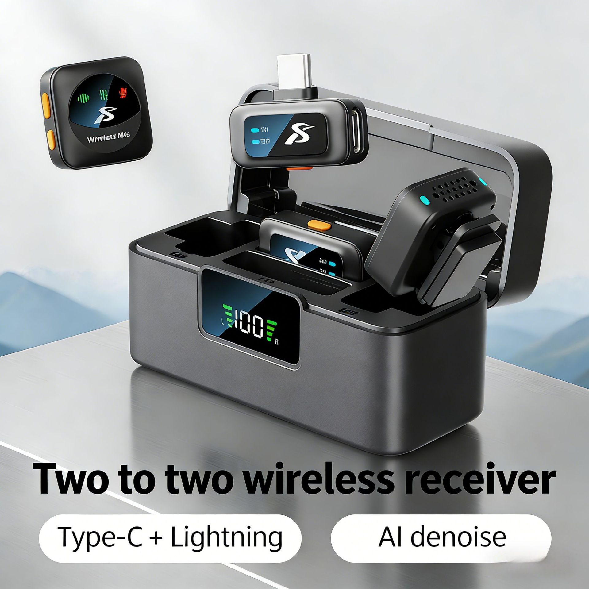 1対2ワイヤレスラベリアマイク屋外ライブブロードキャストインテリジェントノイズリダクション小型ラジオマイクワイヤレスラベリアマイク