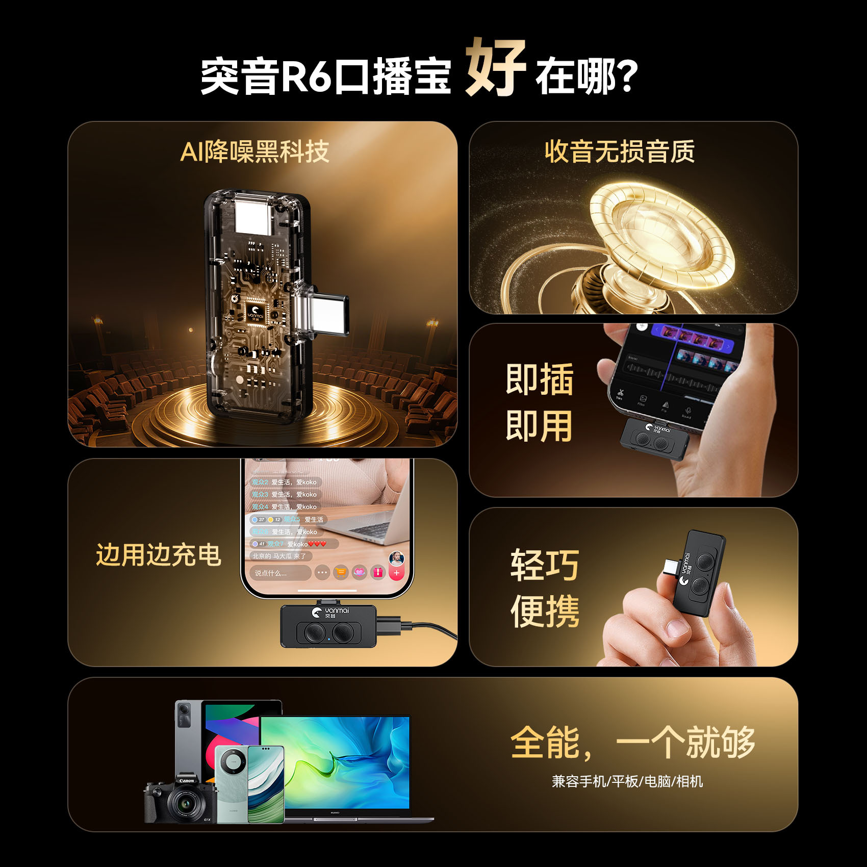 口播宝vlog视频录音专用双麦收音AI降噪即插即用C头手机麦克风