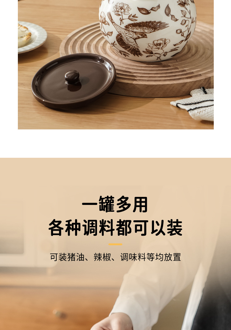 中古风高颜值陶瓷油泼辣子酱罐子酱料调味罐家用大容量带勺猪油罐
