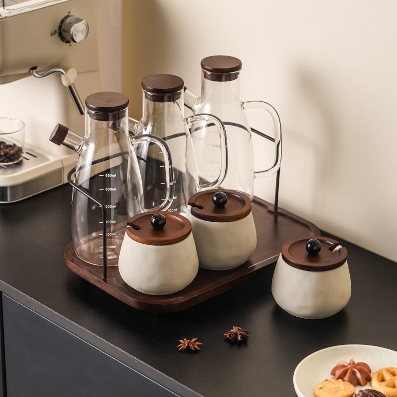 中古風キッチン調味料缶収納セット家庭用セラミック調味料缶塩砂糖缶調味料ガラス油瓶卸売り