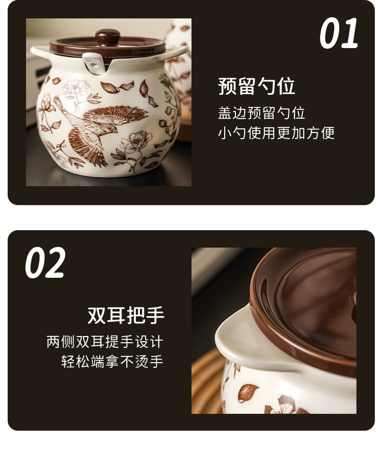 规格 花鸟大号猪油罐,花鸟小号猪油罐
