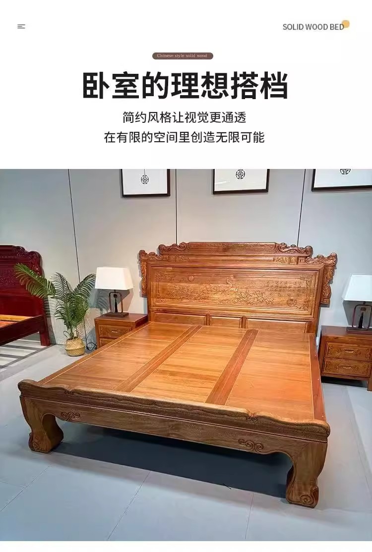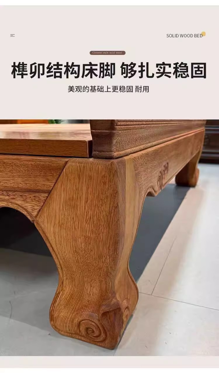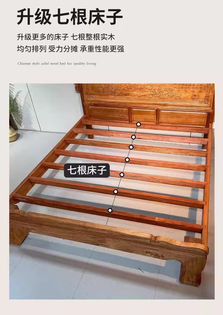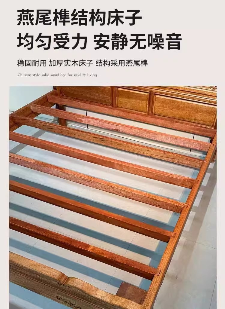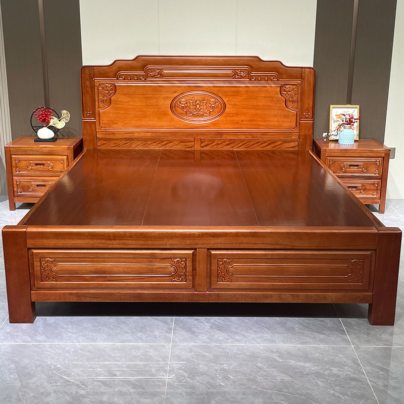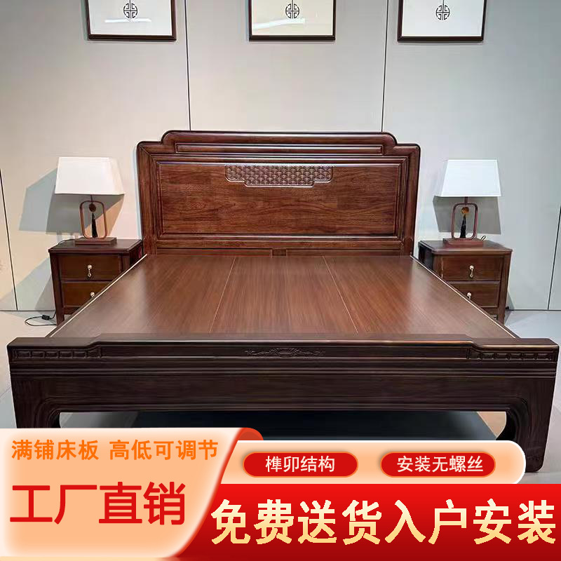 花梨木無垢材中国式ほぞ穴組み立て全無垢材ベッド1.8ダブルベッド1.5主寝室アンティーク彫刻明清古典