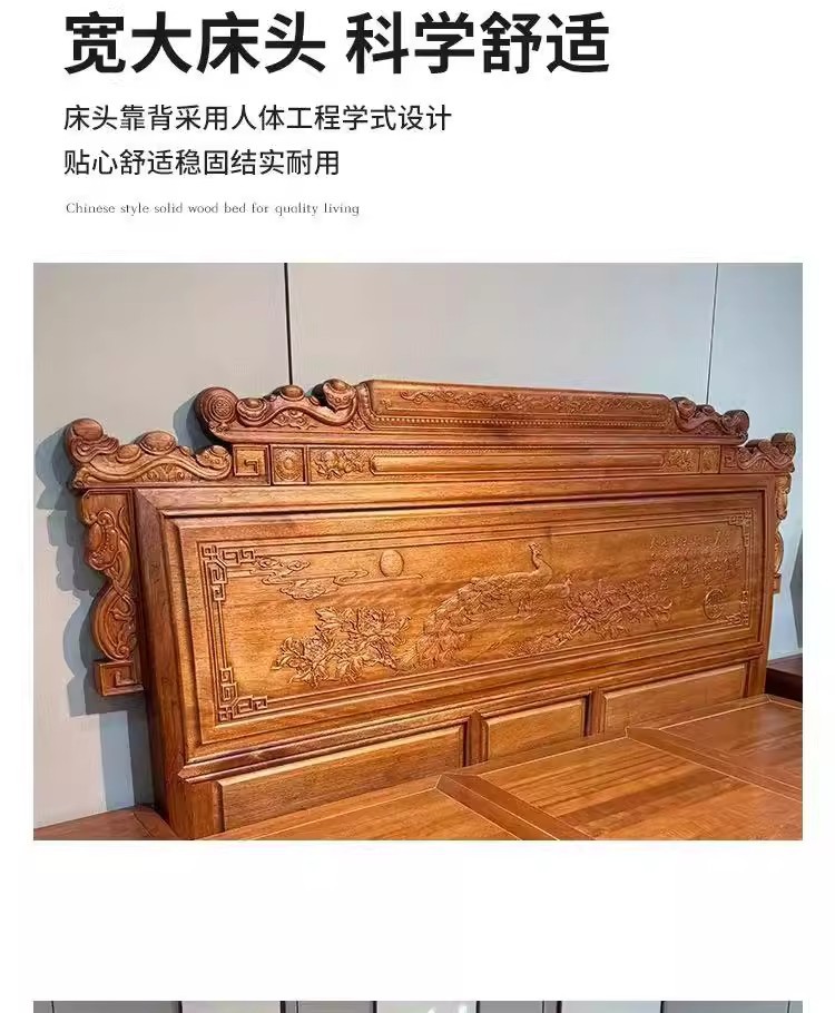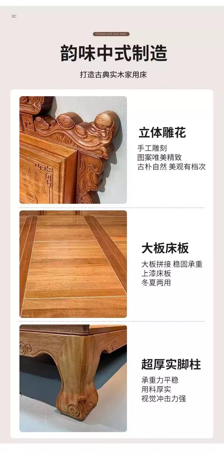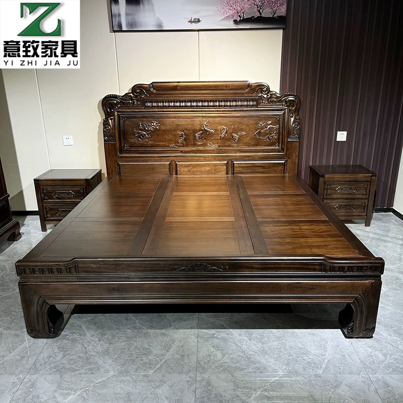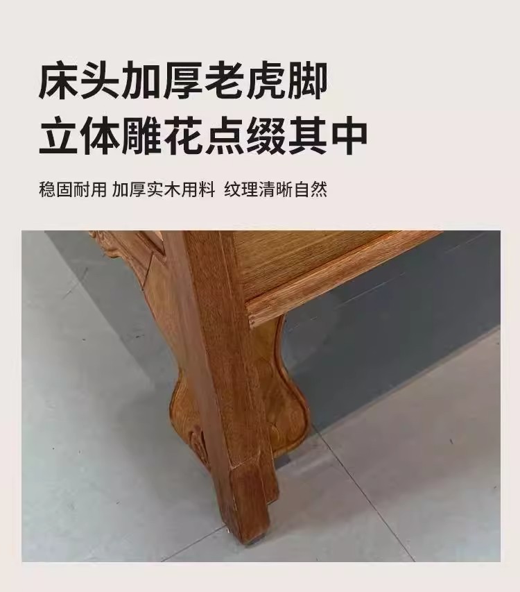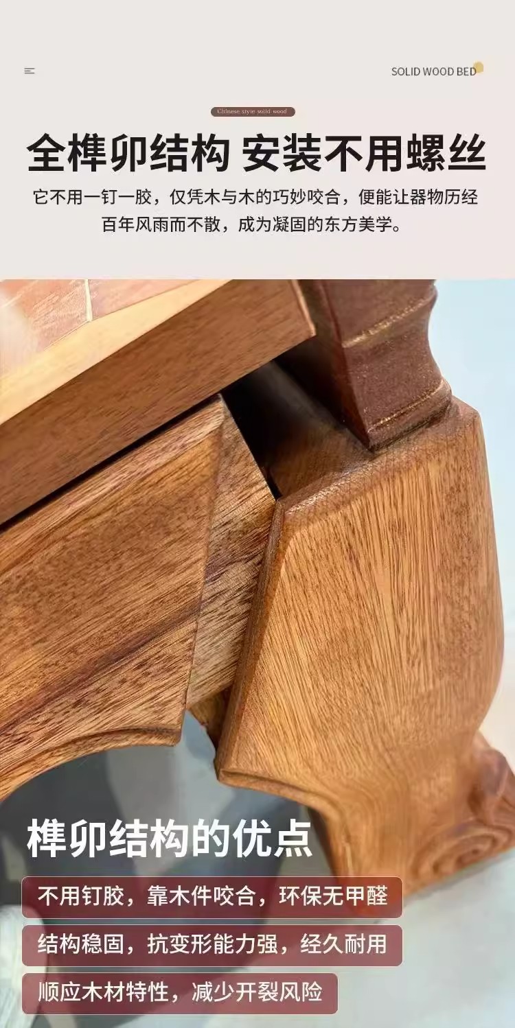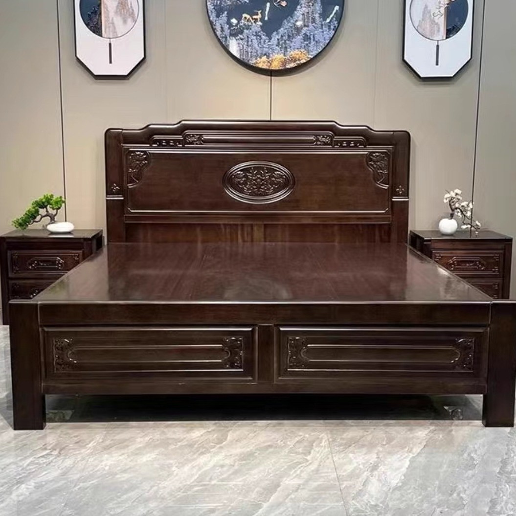 花梨木無垢材中国式ほぞ穴組み立て全無垢材ベッド1.8ダブルベッド1.5主寝室アンティーク彫刻明清古典
