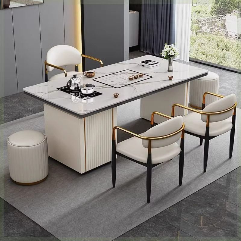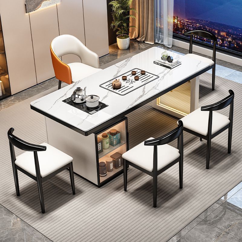 モダンな軽奢スタイルの岩板製茶テーブルと椅子のセット、オフィス用茶台、家庭用茶テーブル、湯沸かし器一体型、シンプルな大型テーブル