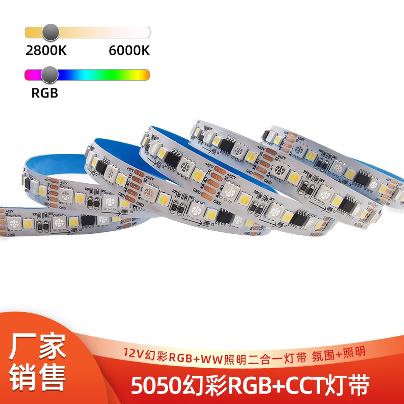 5050RGB+CCT カラフルライトテープ 12v 暖白色と昼白色のデュアルカラー温度 フロアランプストリップ 壁角雰囲気流水LED