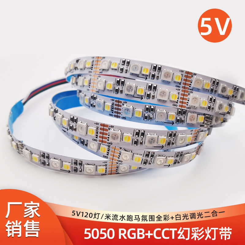 5050低压24V智能RGBCW幻彩灯带五合一RGBCCT七彩跑马流水led灯条