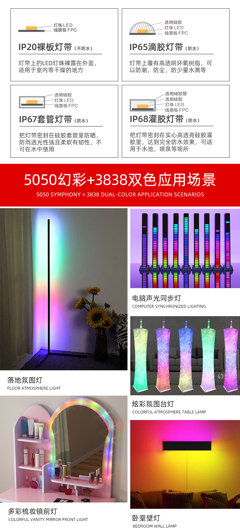 5V2835rgbcct双色温调光炫彩桌面氛围台灯带 5050全彩led低压灯条