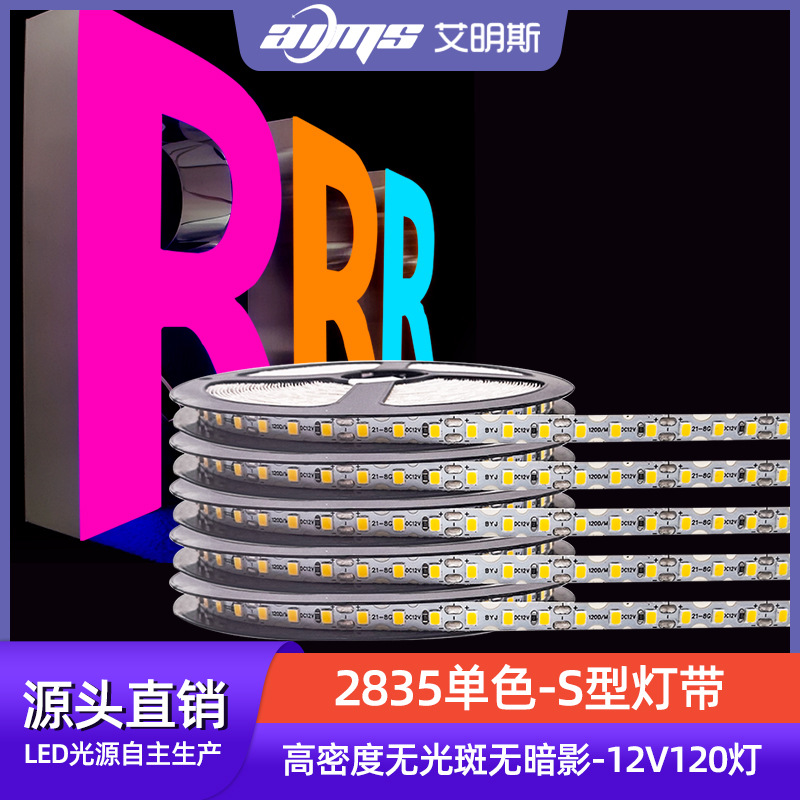 2835単色s型ledランプ120ランプ12v板幅6mm無暗区曲げ可能ネオン文字広告ランプ