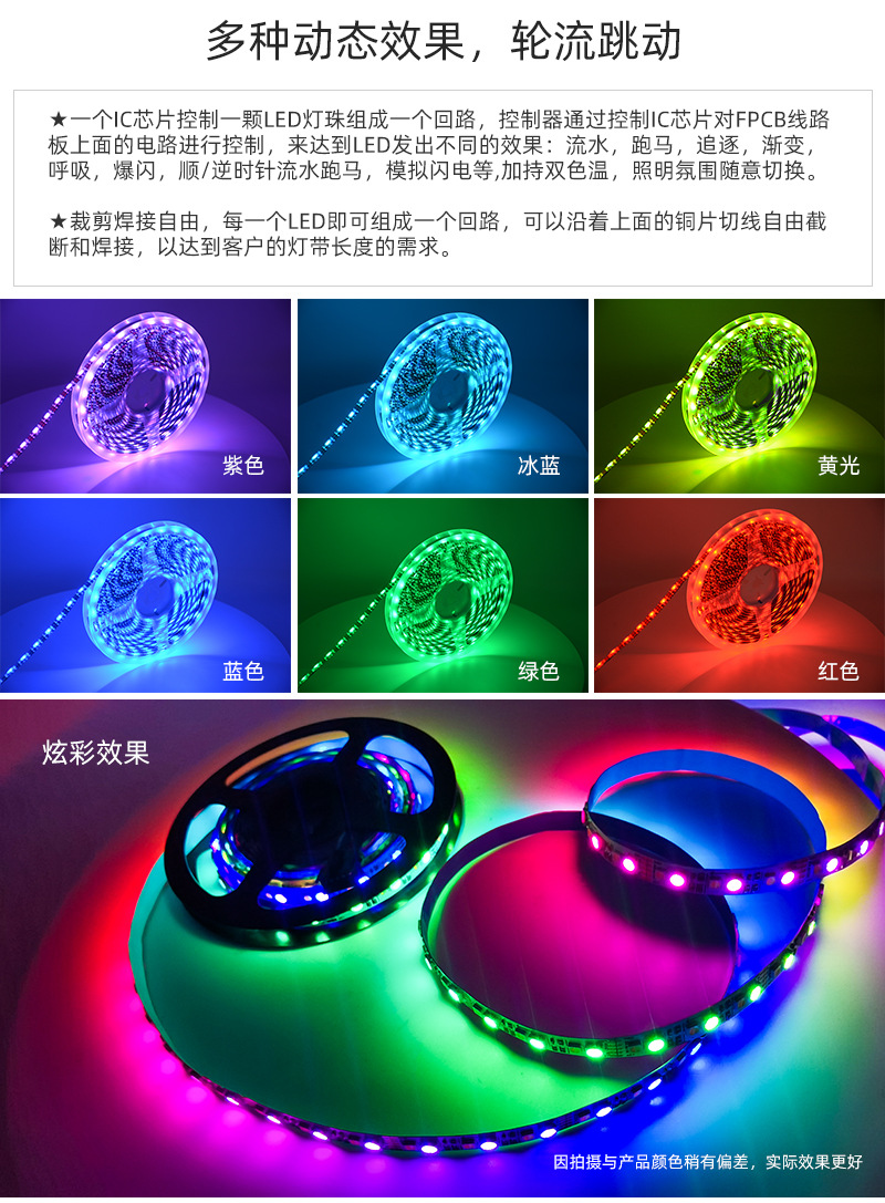 5mm6mm幅のライトストリップ、5v60灯、狭幅、単点単一制御、流水プログラミング、5050内蔵ICライトストリップ、スマート
