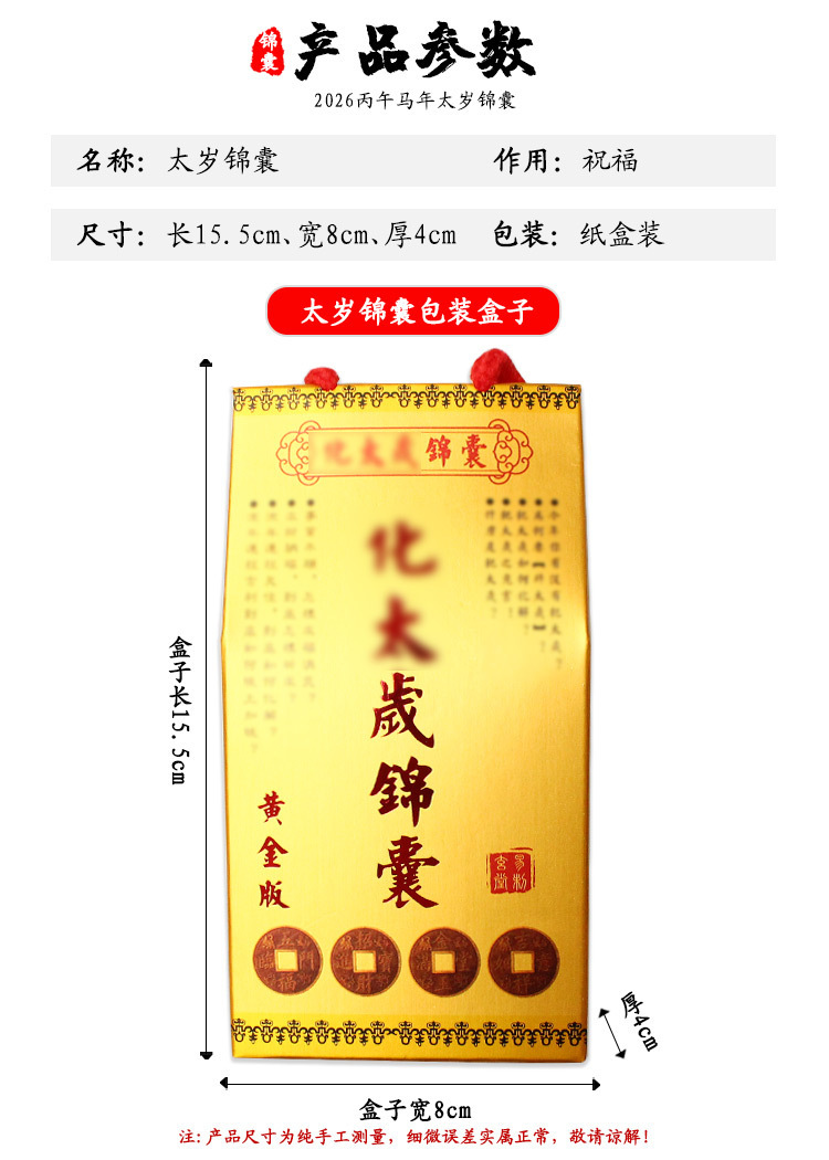 2026丙午马年豪华黄金版太岁布袋锦囊马牛鼠兔生肖太岁福袋批发