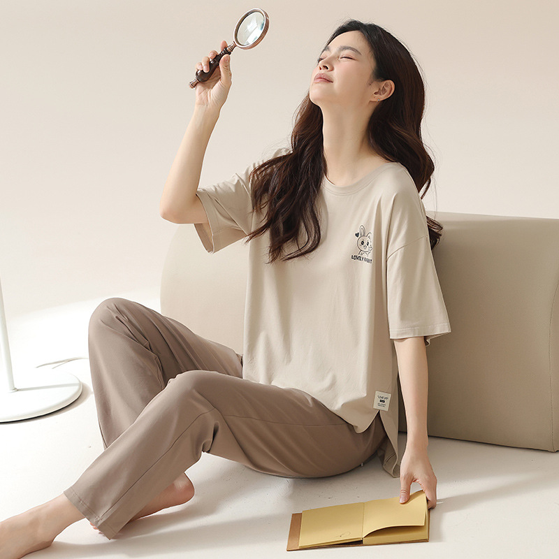 パジャマ女春夏レカ綿胸パッド付き半袖ズボン2025新型外着ホームウェアセット